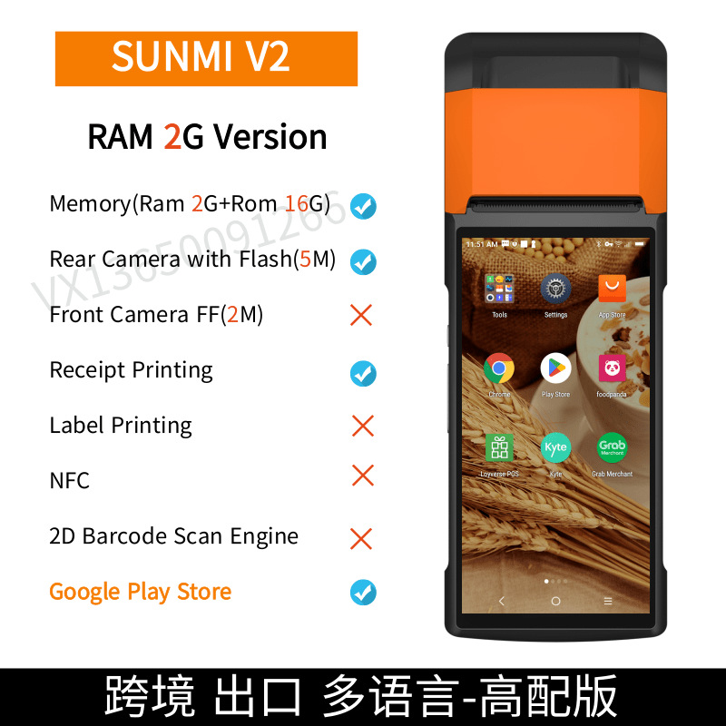 国际版SUNMI商米V2手持收银机GRAB外卖接单Loverse收银打印一体机 English | 投诉