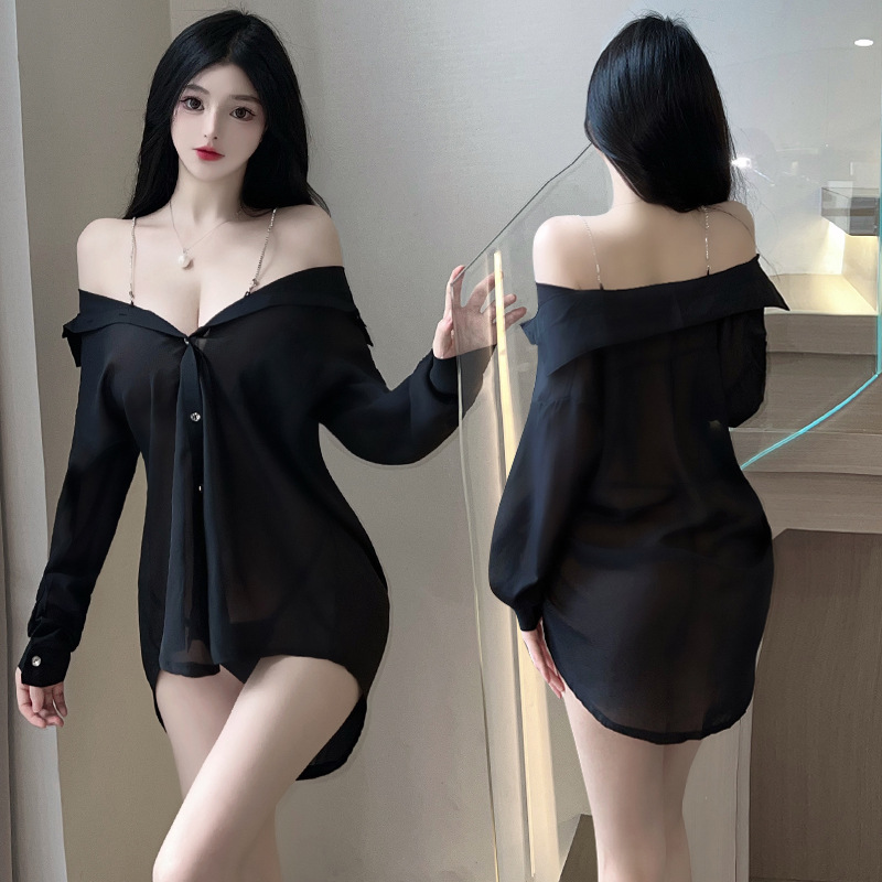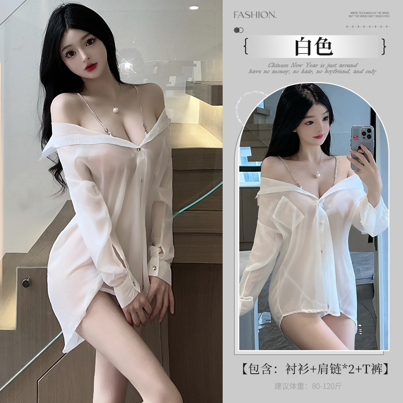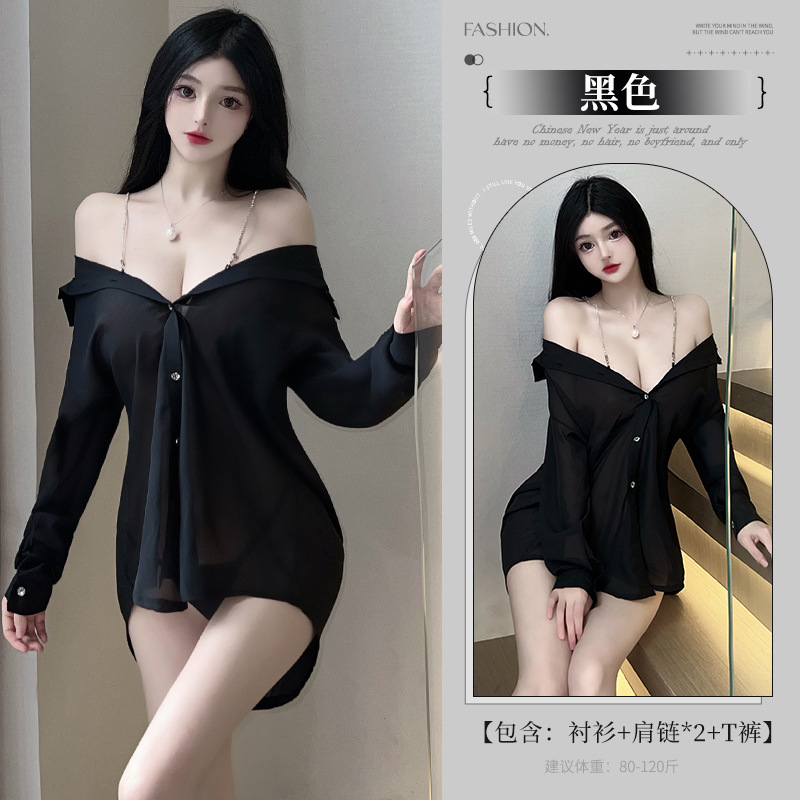 情趣内衣女睡衣衬衫开档纯欲制服诱惑大码火辣激情战袍8202