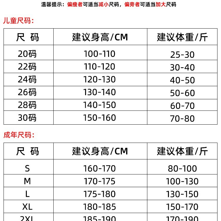 | 儿童-30码【身高150-160cm】 | ¥4875 | 295件可售 |