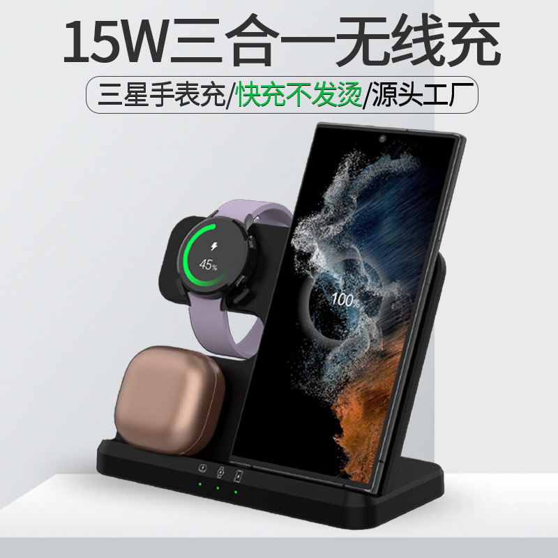 跨境15W桌面三合一无线充电器立式适用三星手机手表多功能快充 投诉