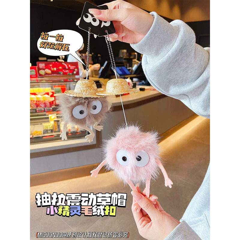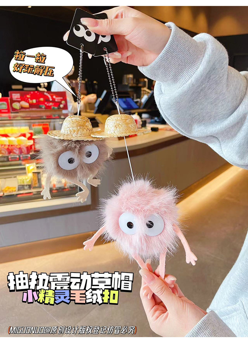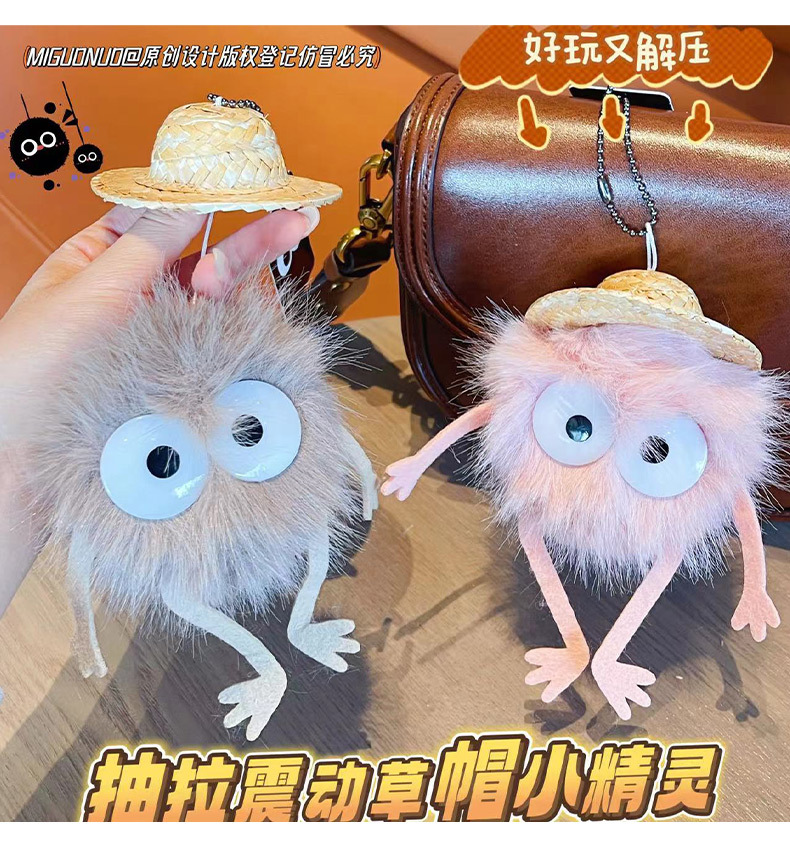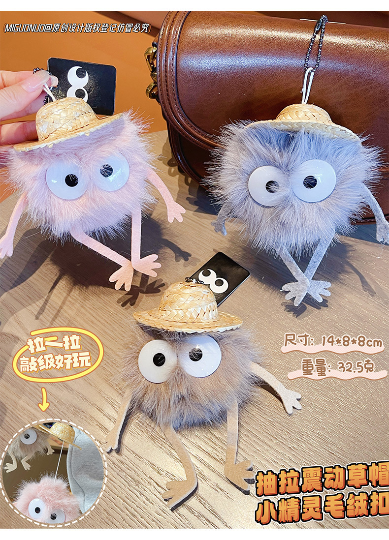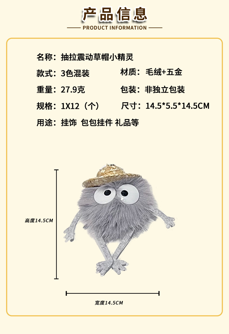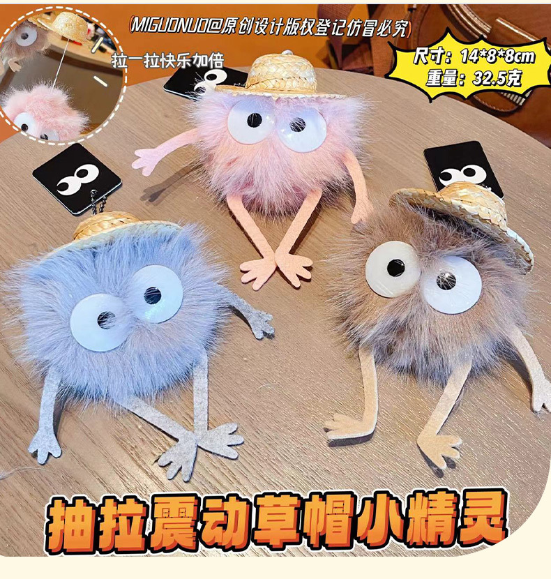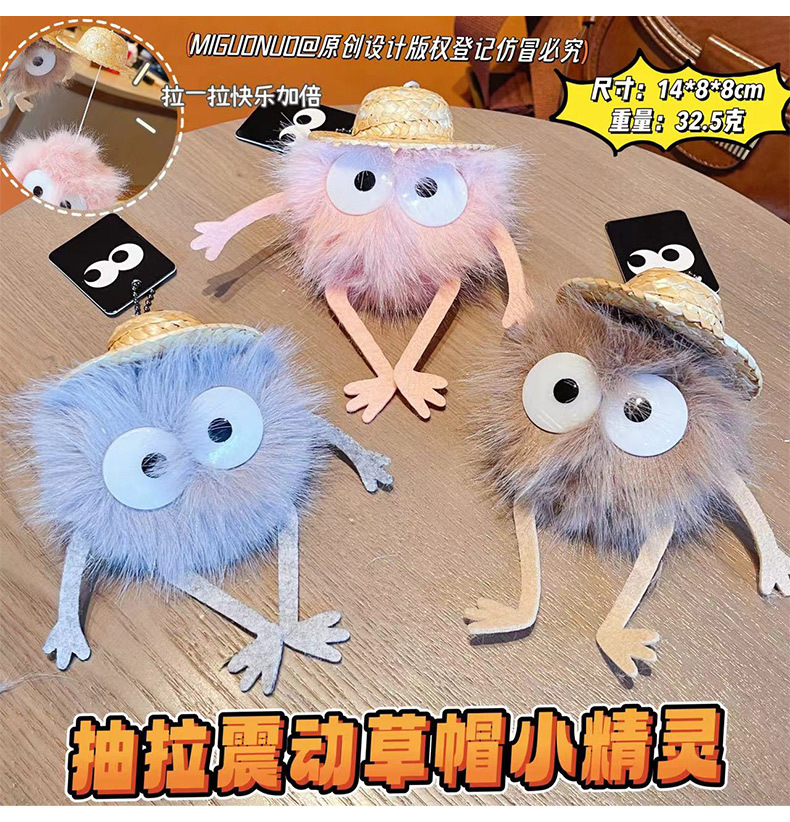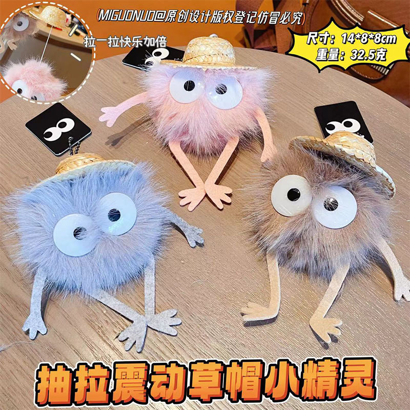 创意抽拉震动草帽小精灵毛绒包包挂饰可爱公仔玩具春节小礼品批发 English | 投诉