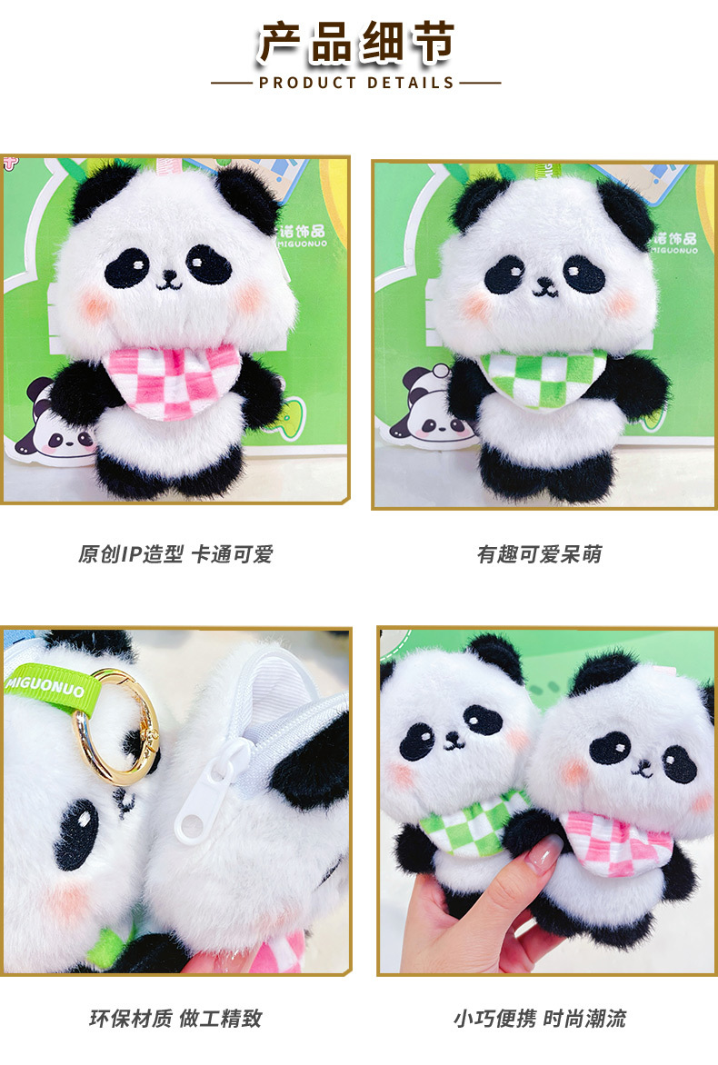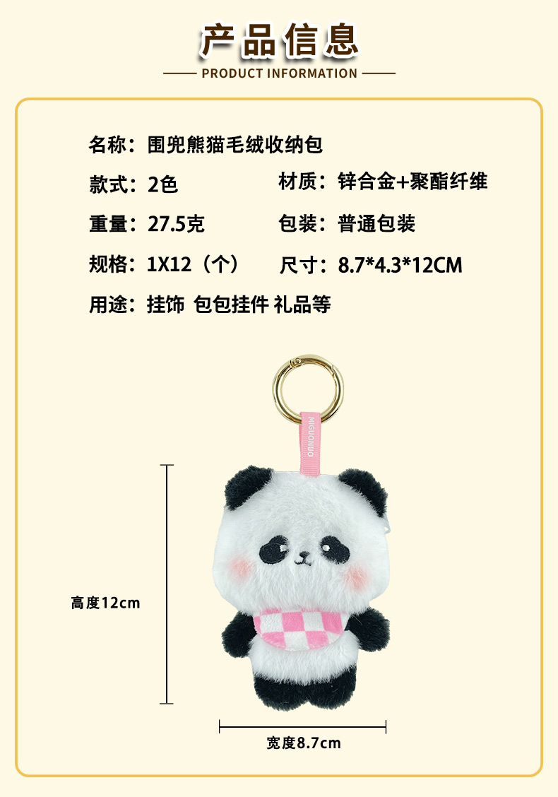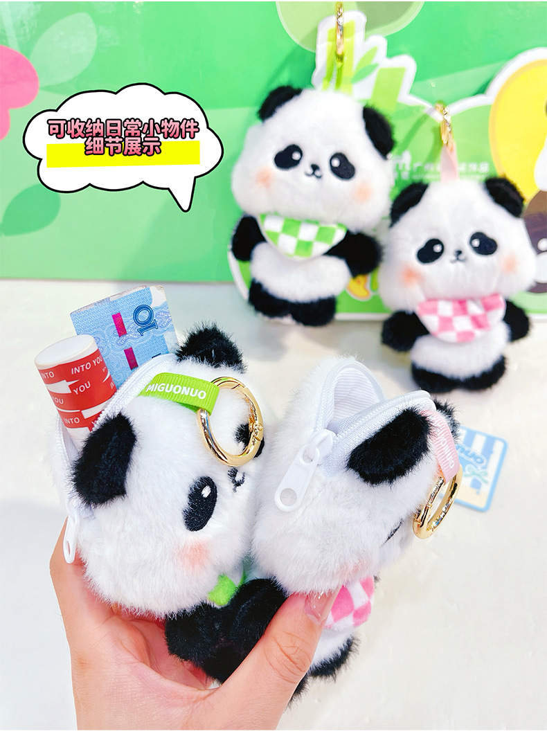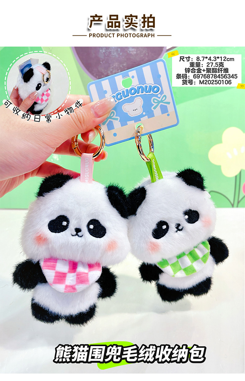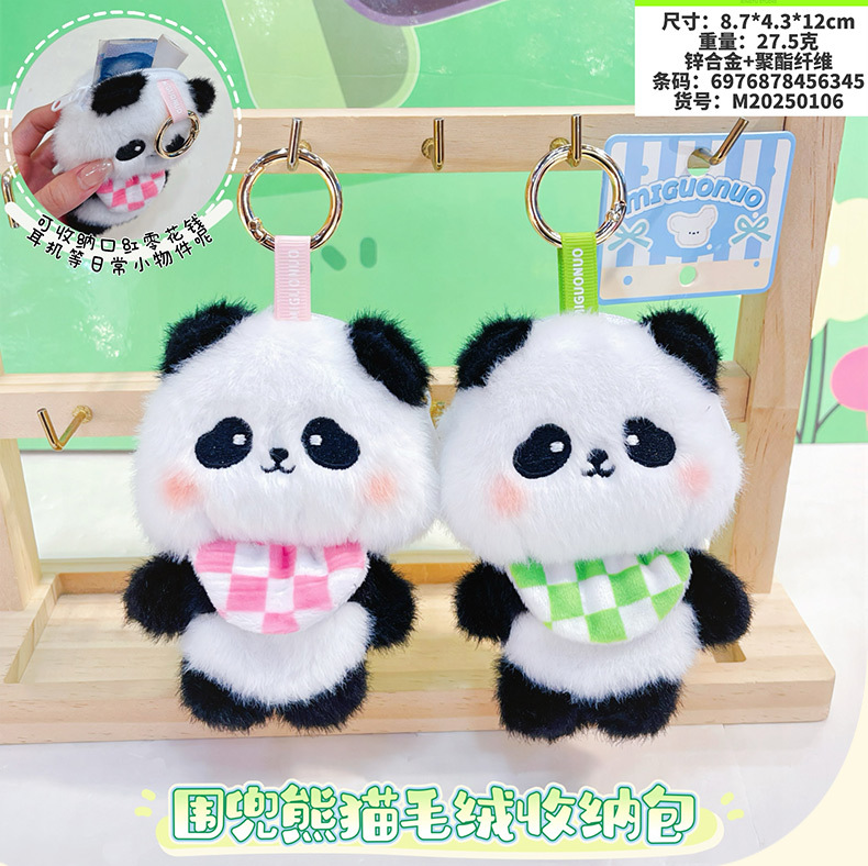 围兜熊猫毛绒收纳包创意零钱包钥匙扣卡通毛绒公仔学生包包挂件 English | 投诉