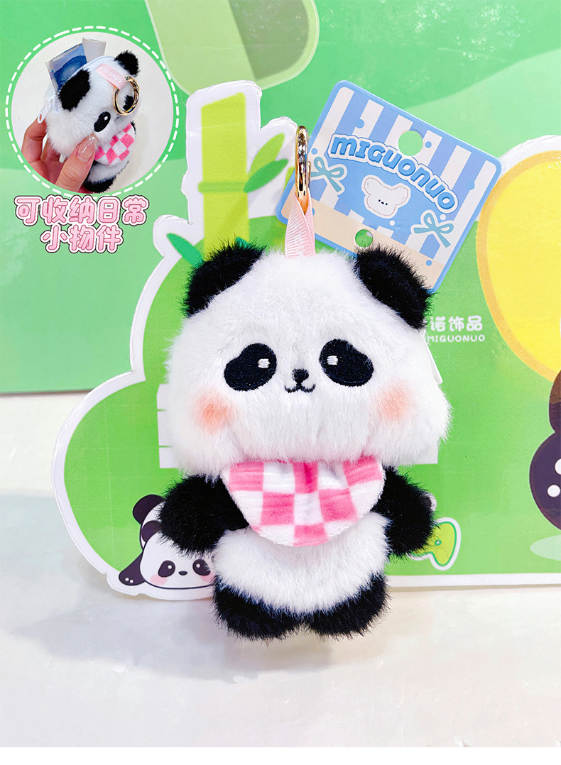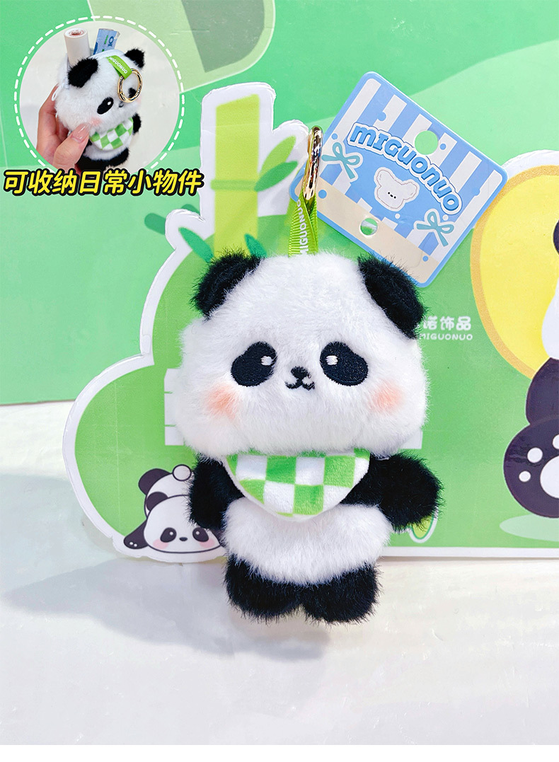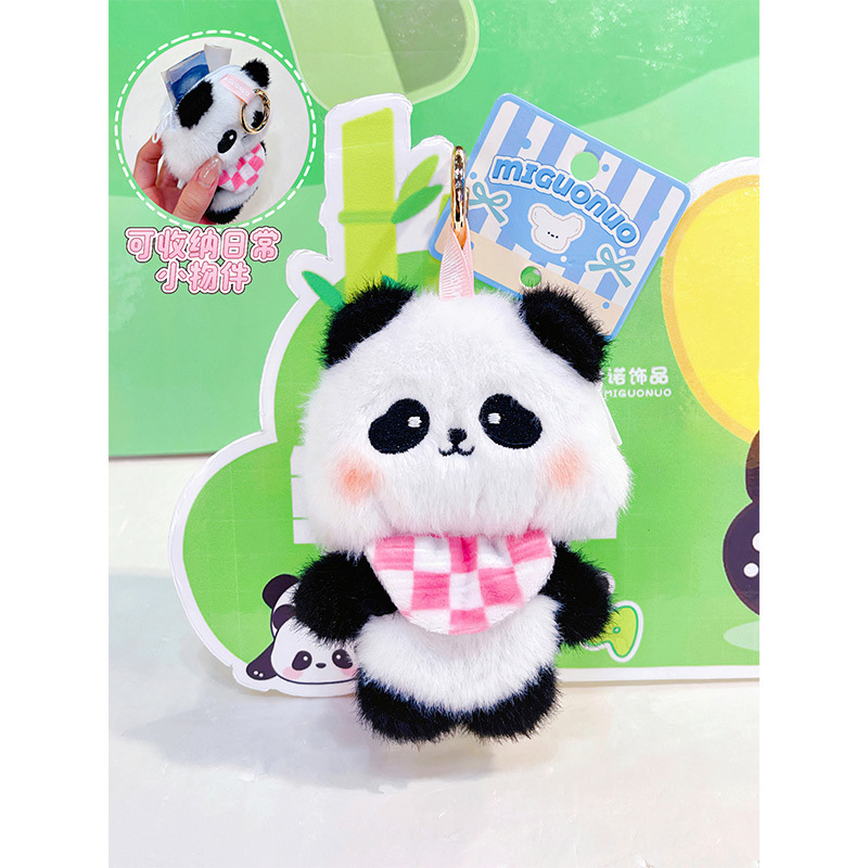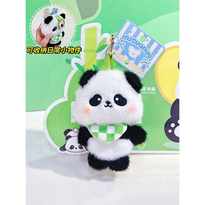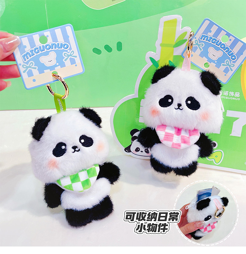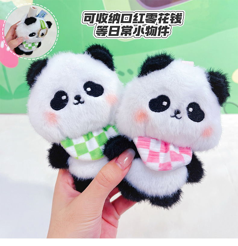 围兜熊猫毛绒收纳包创意零钱包钥匙扣卡通毛绒公仔学生包包挂件 English | 投诉