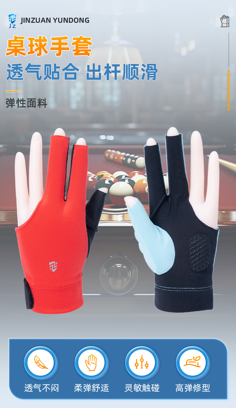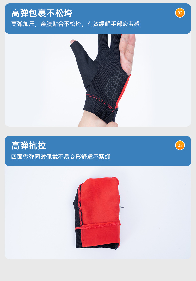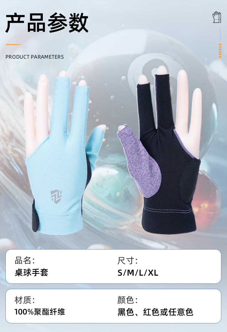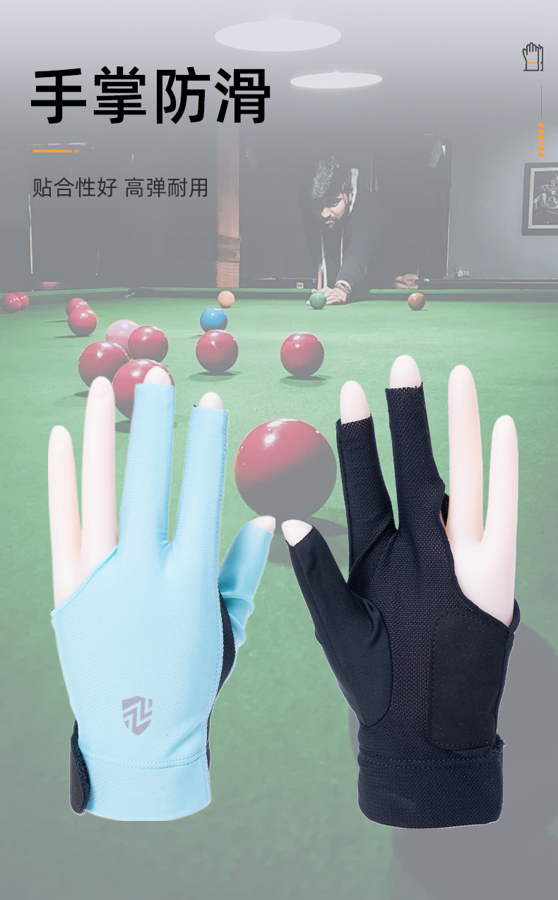 台球手套薄款透气亲肤高弹力防滑耐磨三指漏指手套斯诺克桌球手套 投诉