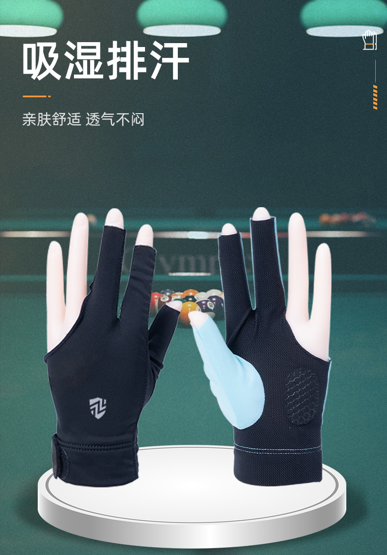 台球手套薄款透气亲肤高弹力防滑耐磨三指漏指手套斯诺克桌球手套