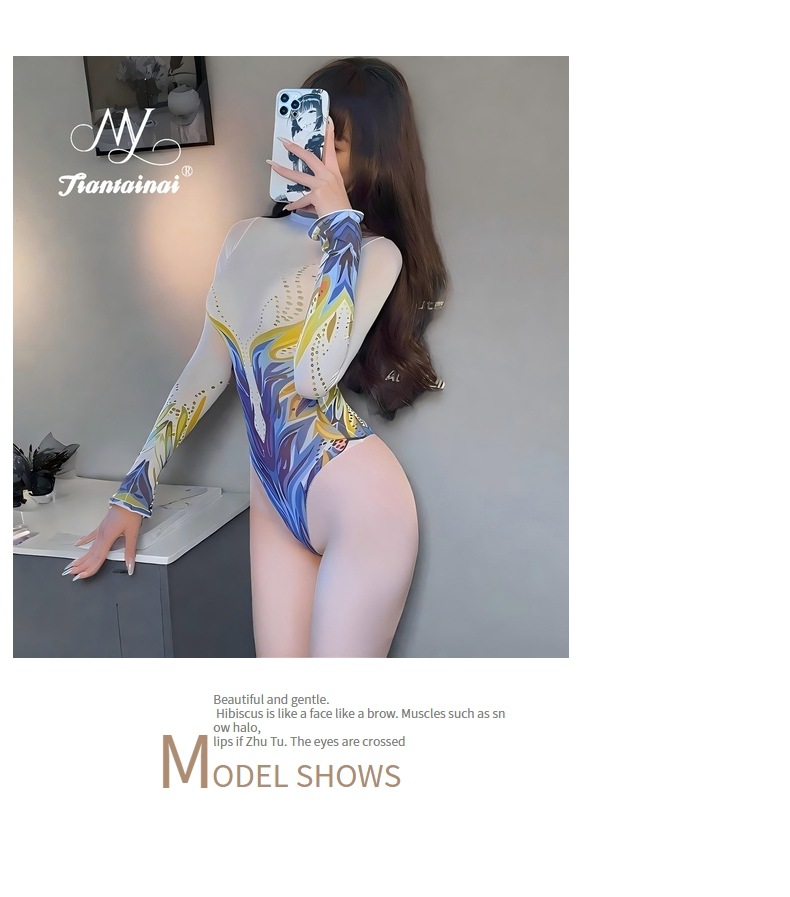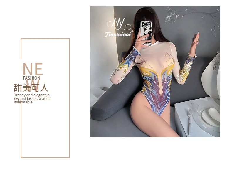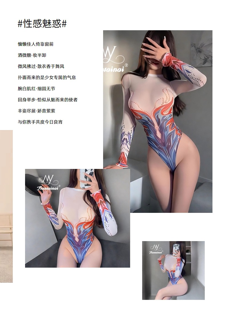 情趣内衣性感免脱印花透明连袜衣大码诱惑开裆纯欲丝袜套装OL制服 投诉
