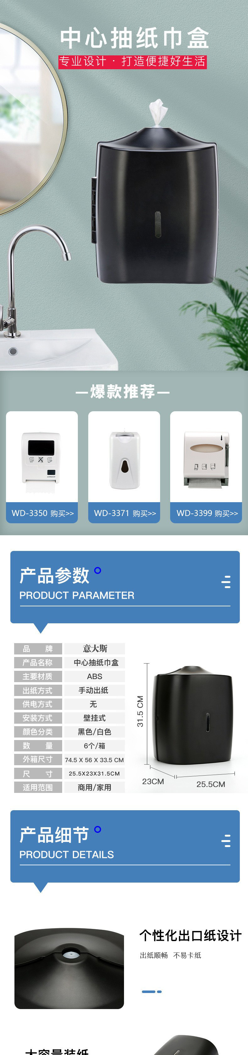 品牌: 意大斯ITAX 是否进口: 否 材质: 塑料 适用纸巾: 抽取式纸巾 适用场合: 客厅,卫浴间,18328127424 型号: WD-3372 产地: 深圳 箱装数量: 6PCS 贸易属性: 内贸+外贸 加印LOGO: 可以 重量: 1.0 kg/件