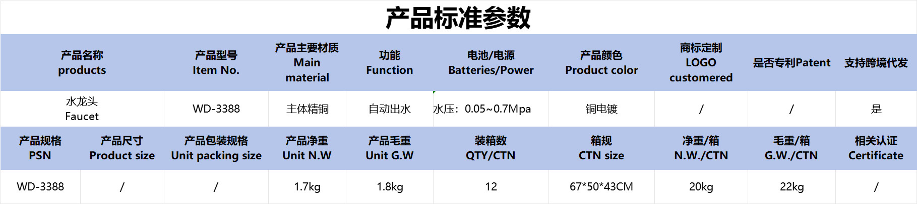 • 规格