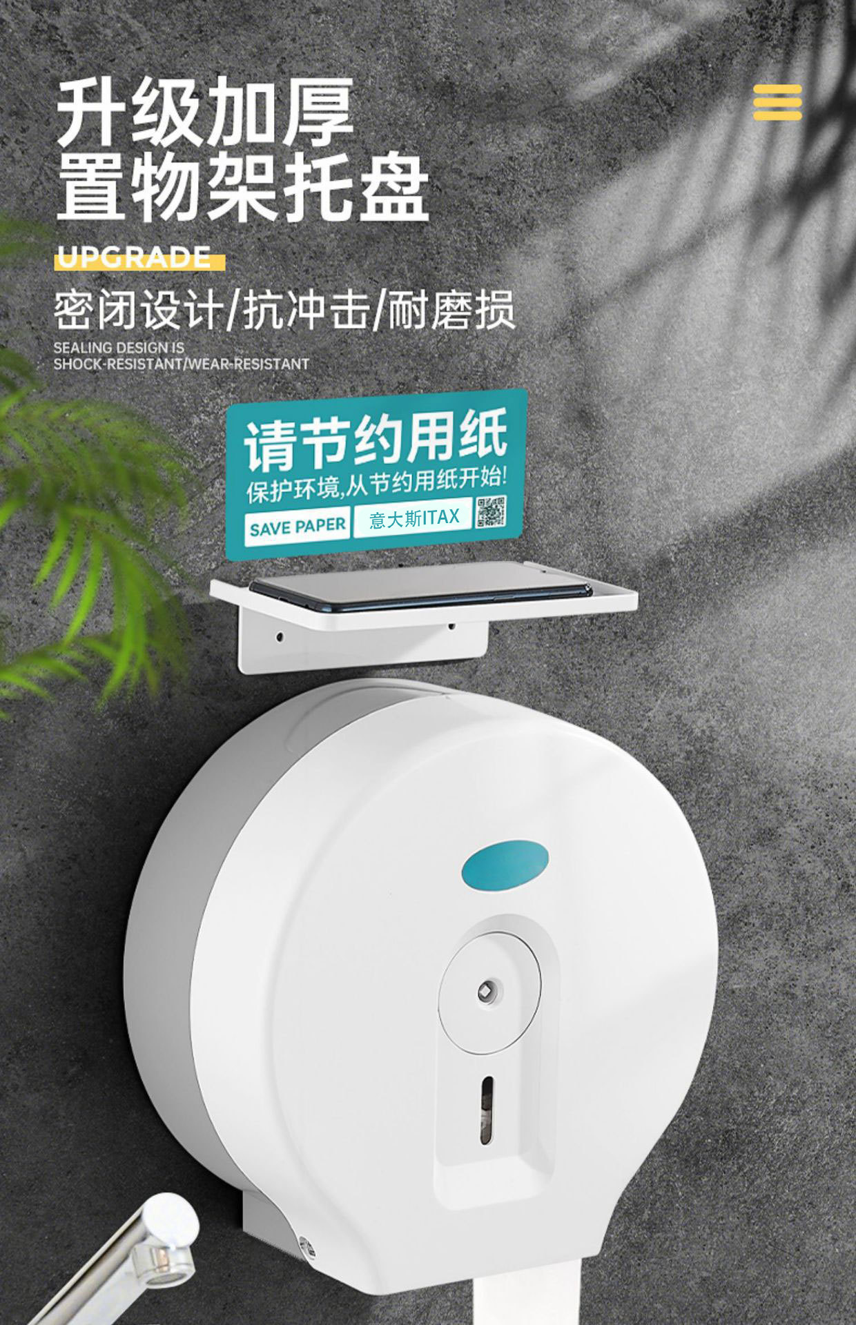 品牌: 意大斯ITAX 是否进口: 否 材质: ABS工程塑料 适用纸巾: 卷纸 适用场合: -1,卫浴间,其他 型号: WD-5826ABS白 产地: 温州 箱装数量: 12 贸易属性: 内贸+外贸 加印LOGO: 可以 重量: 1.0 kg/个