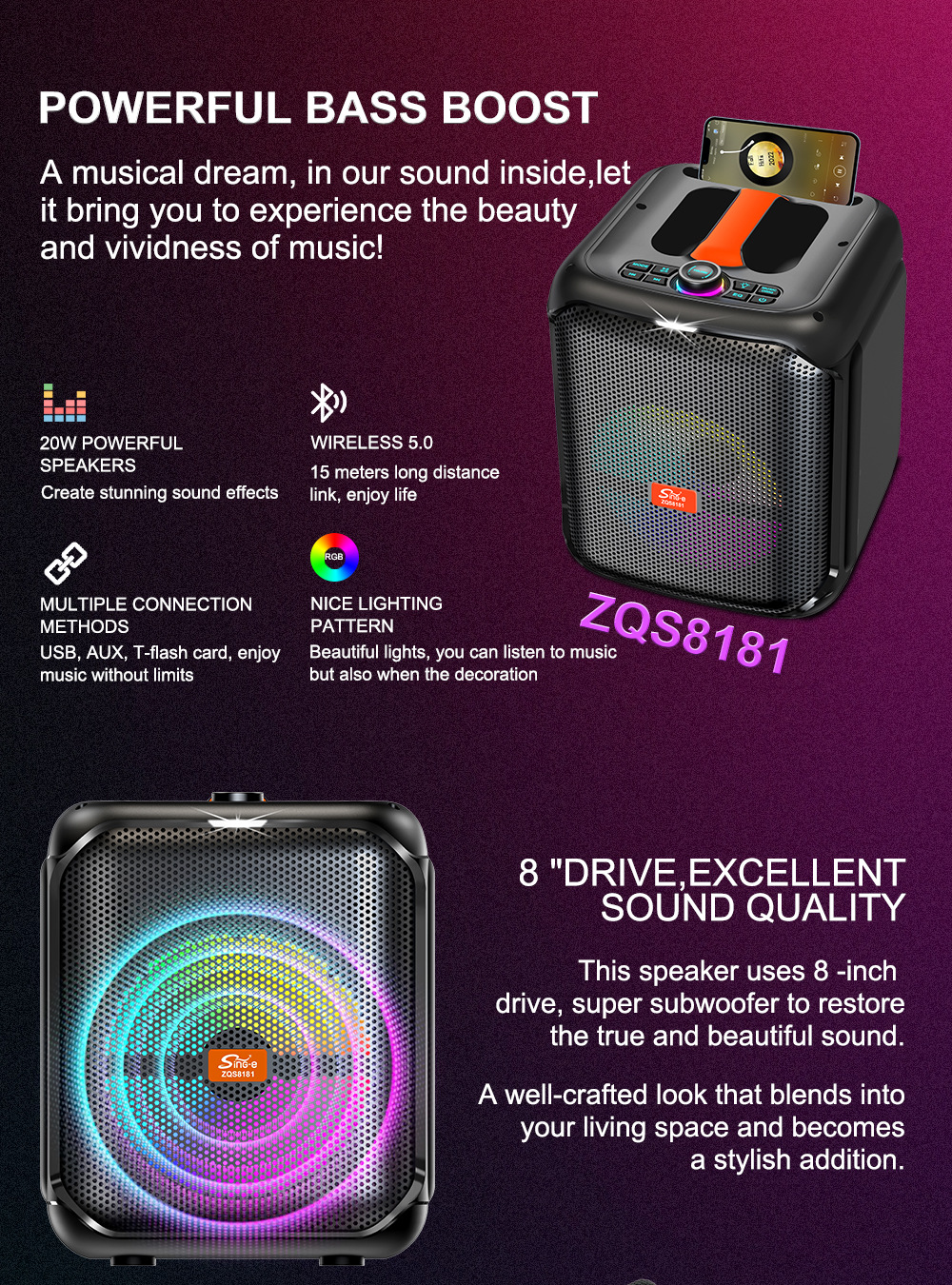 喇叭规格:单8寸