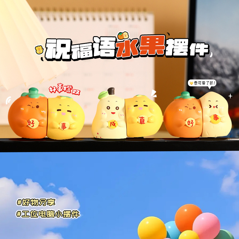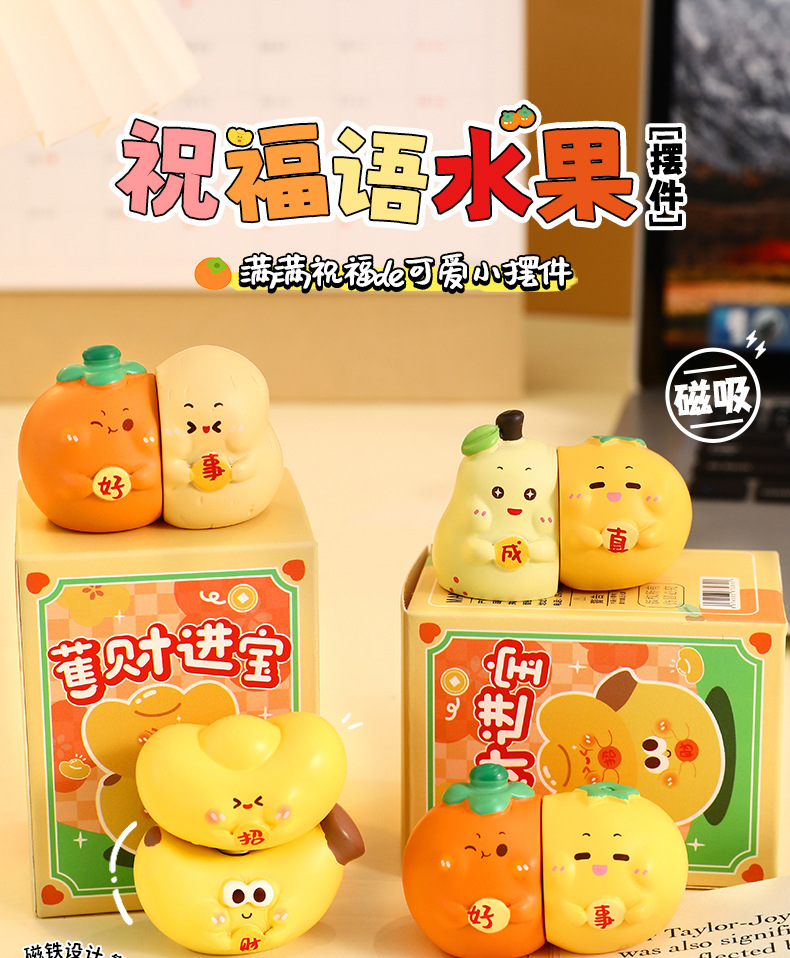 原创正版祝福语水果情侣摆件磁吸桌面小摆饰工位办公室装饰品批发