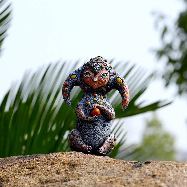 跨境新款生物幻想三眼外星人 树脂摆件户外田园庭院摆饰装饰品