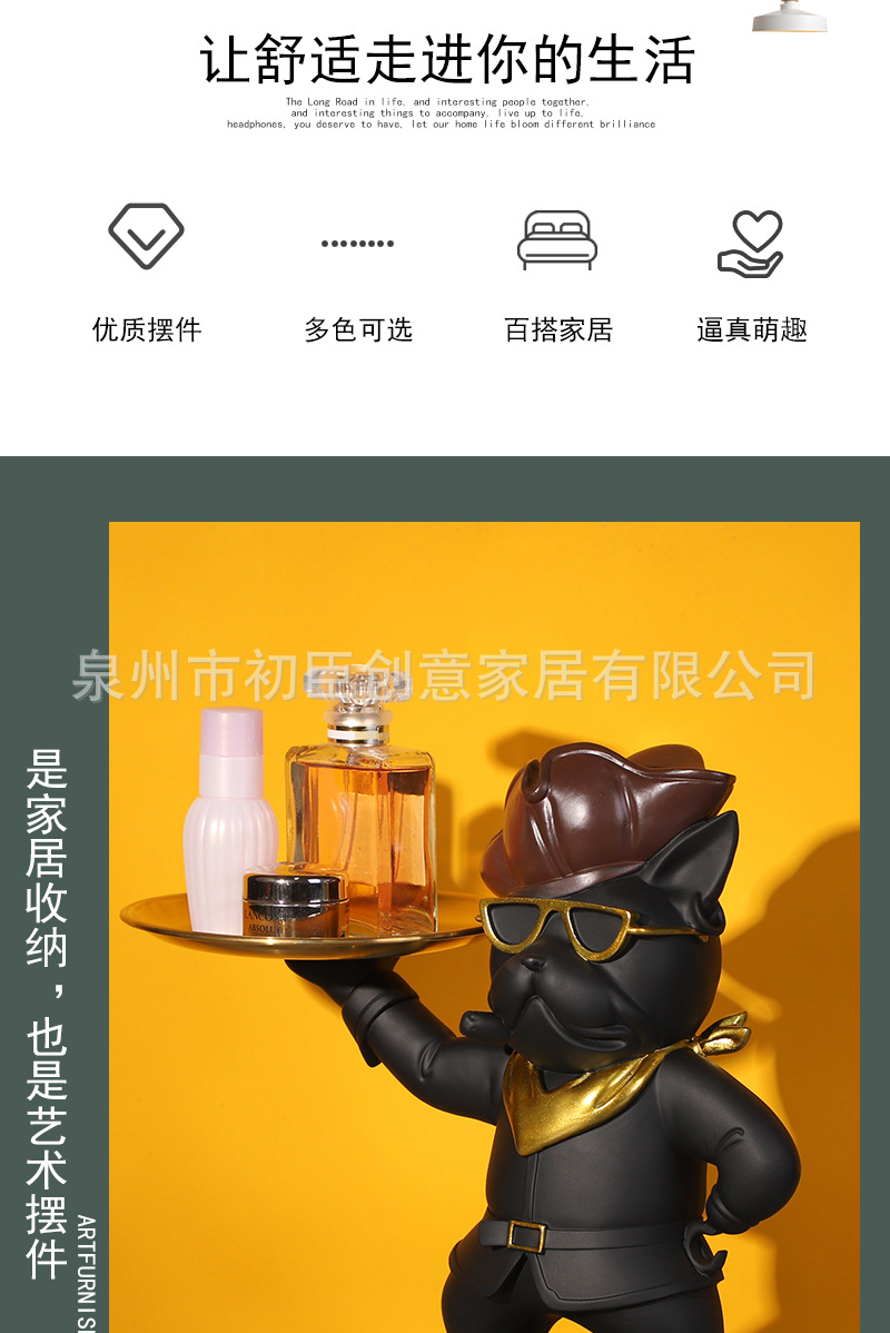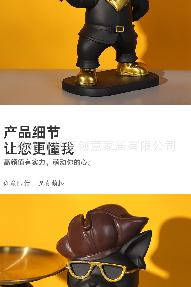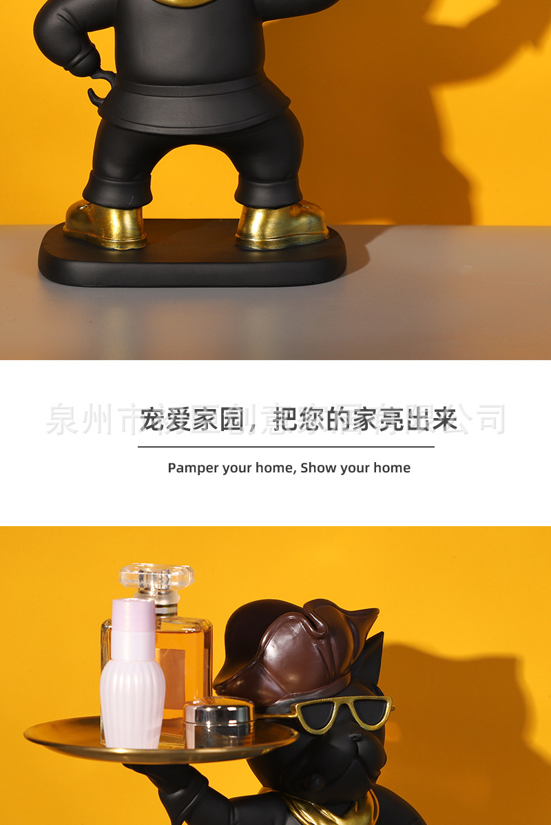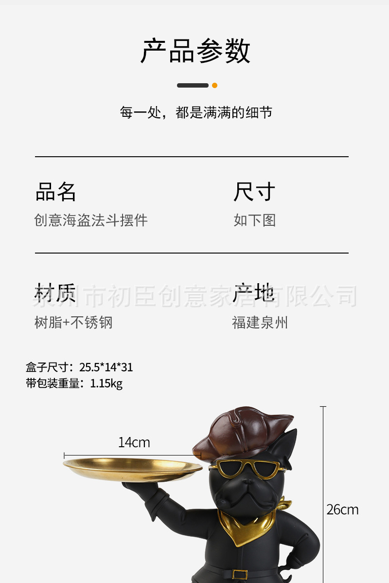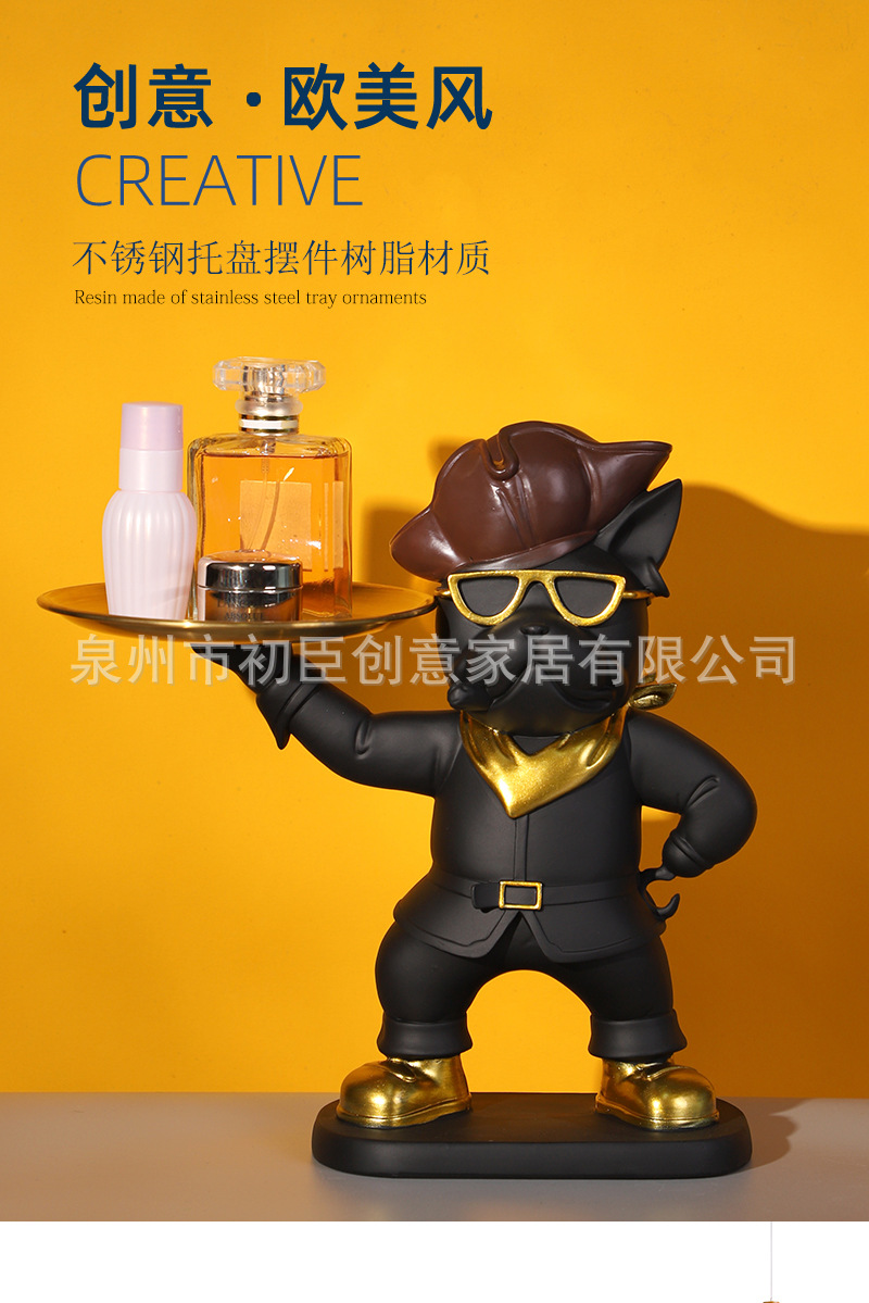 海盗法斗狗摆件创意钥匙收纳托盘客厅玄关桌面展厅树脂工艺品装饰 投诉