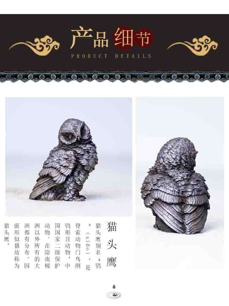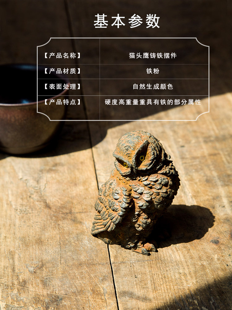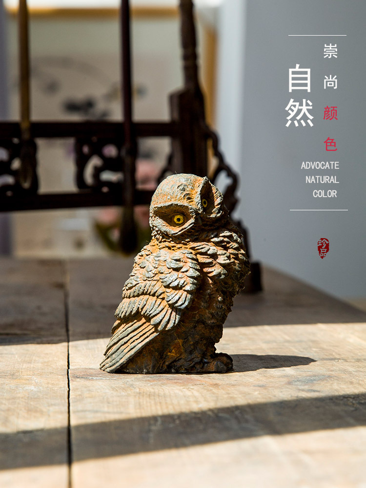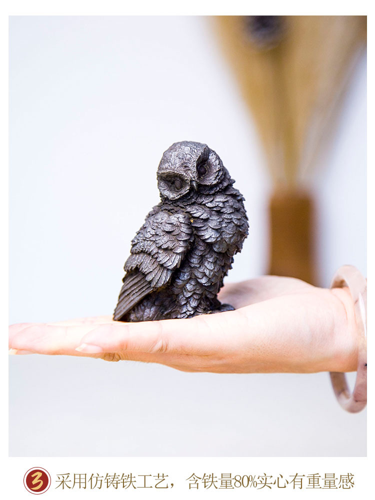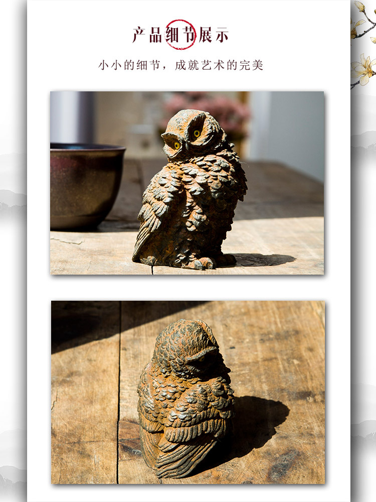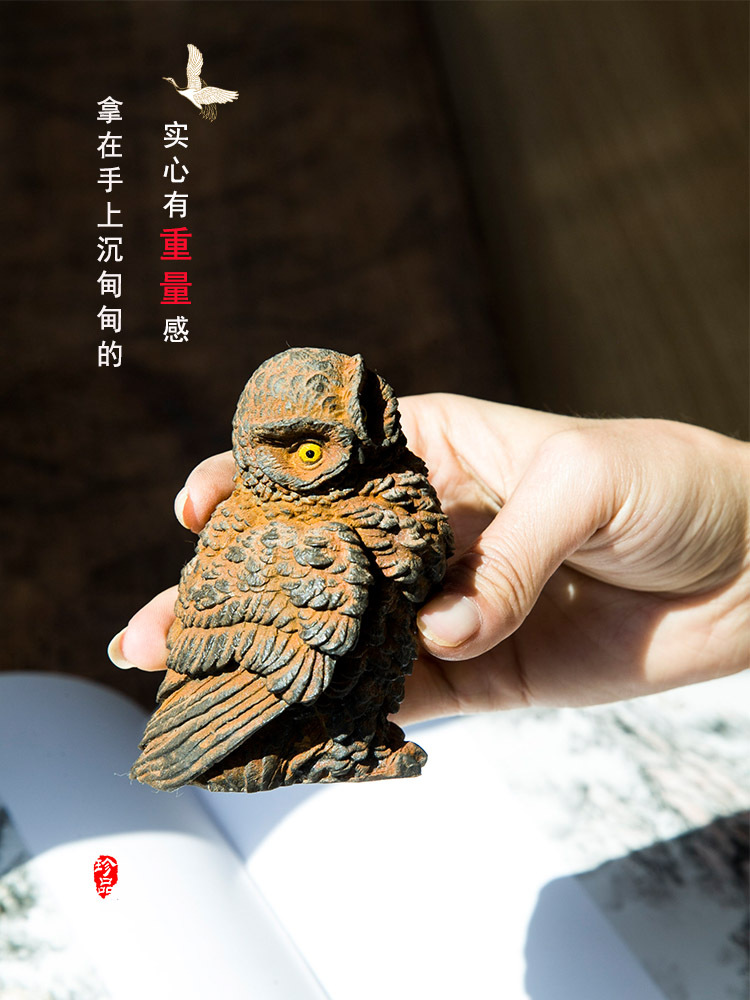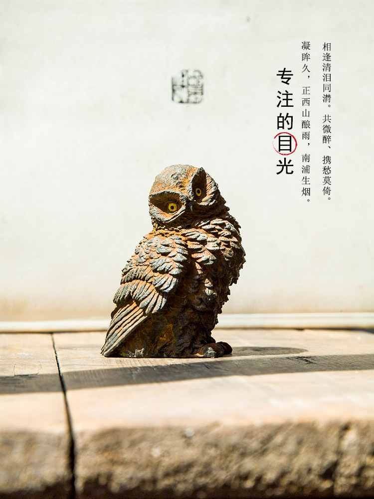原创仿铸铁铁锈款猫头鹰客厅桌面迷你家居摆件书房装饰纯手工茶宠 投诉