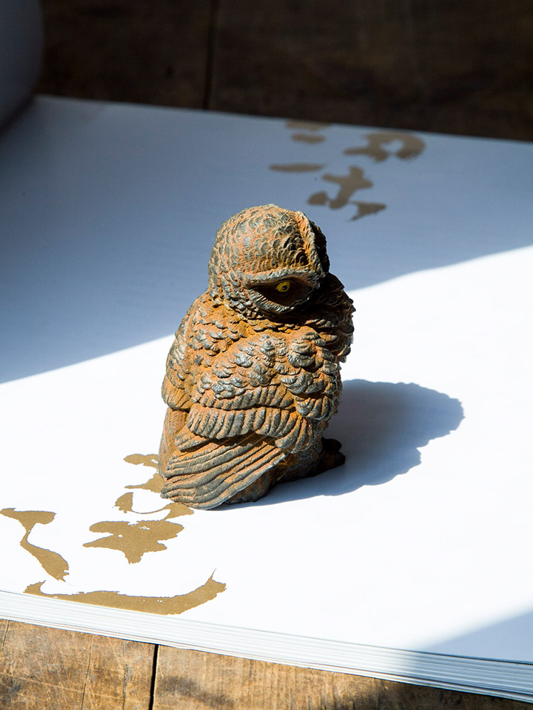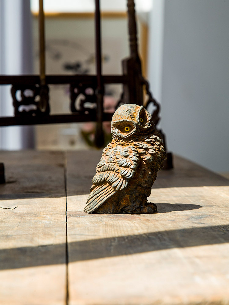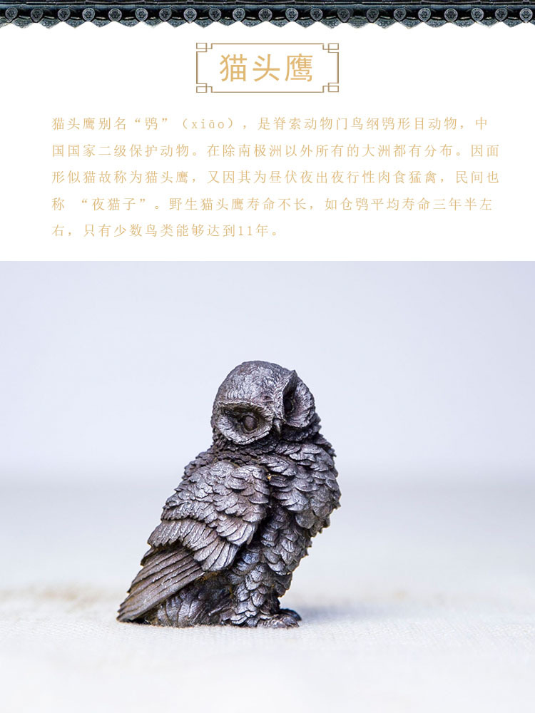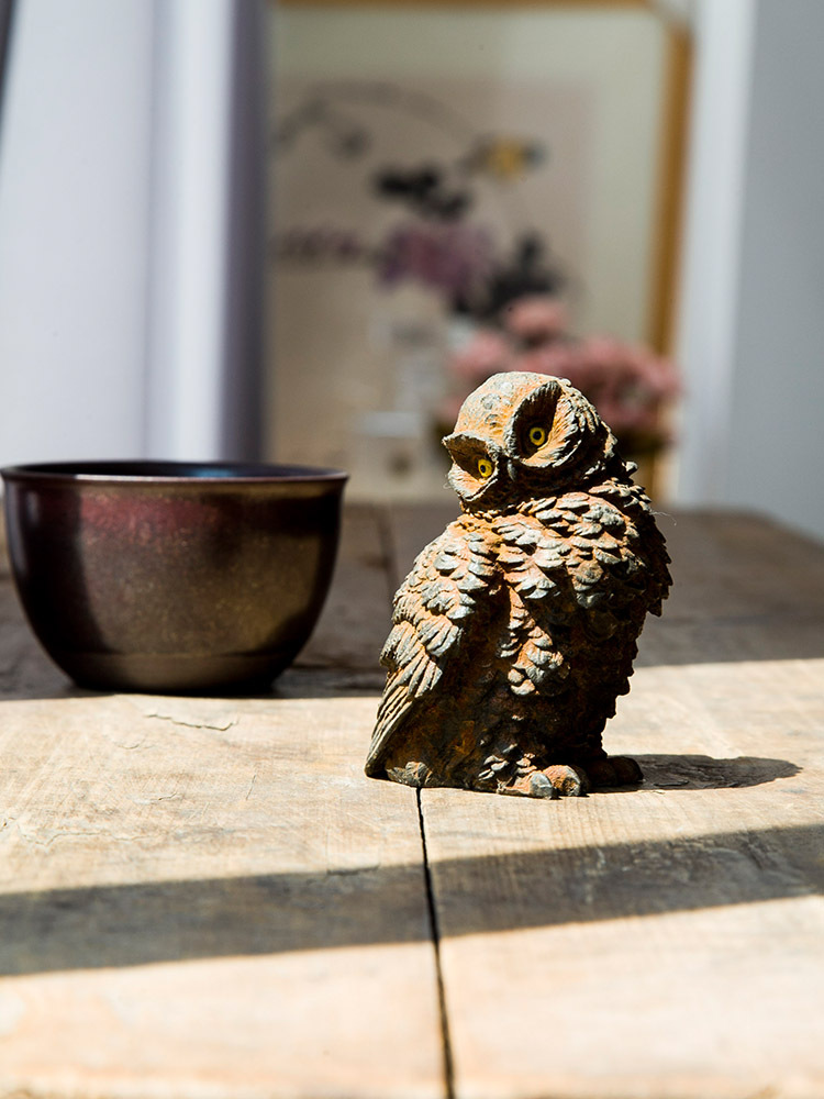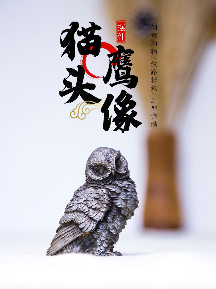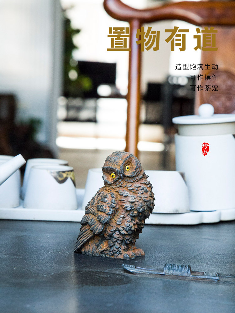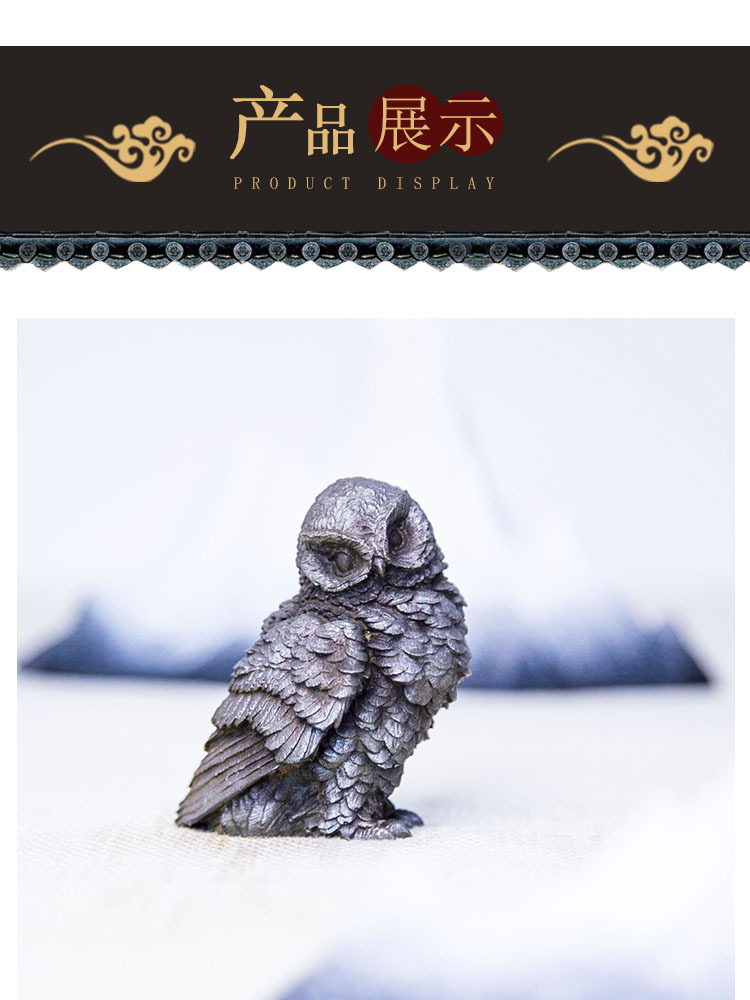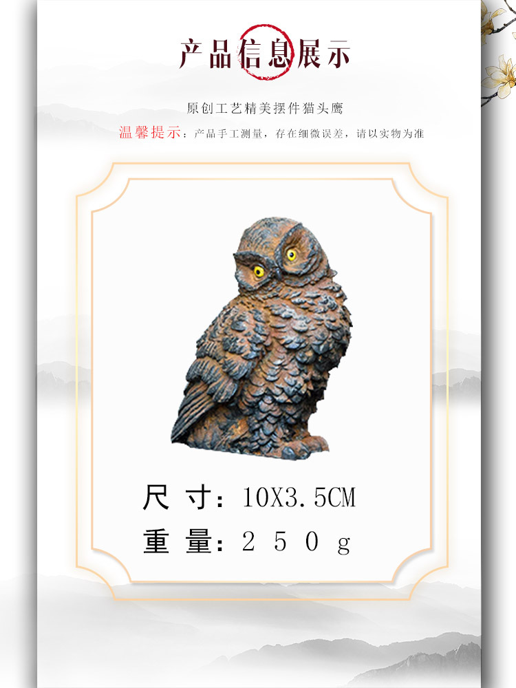 原创仿铸铁铁锈款猫头鹰客厅桌面迷你家居摆件书房装饰纯手工茶宠 投诉