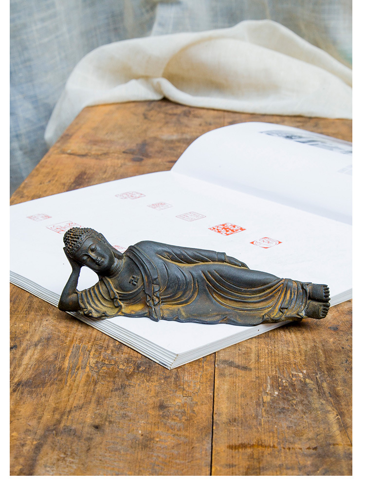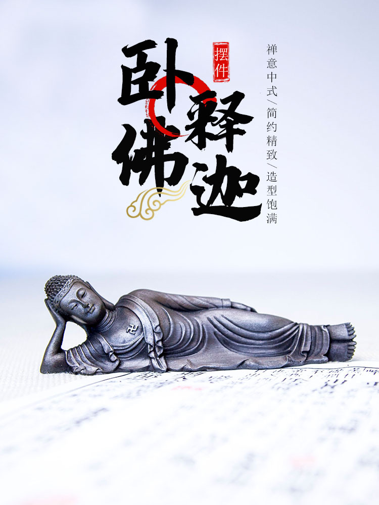 禅意新中式卧佛释迦牟尼佛祖桌面小摆件纯手工工艺品书桌茶台摆设