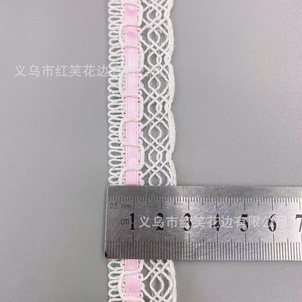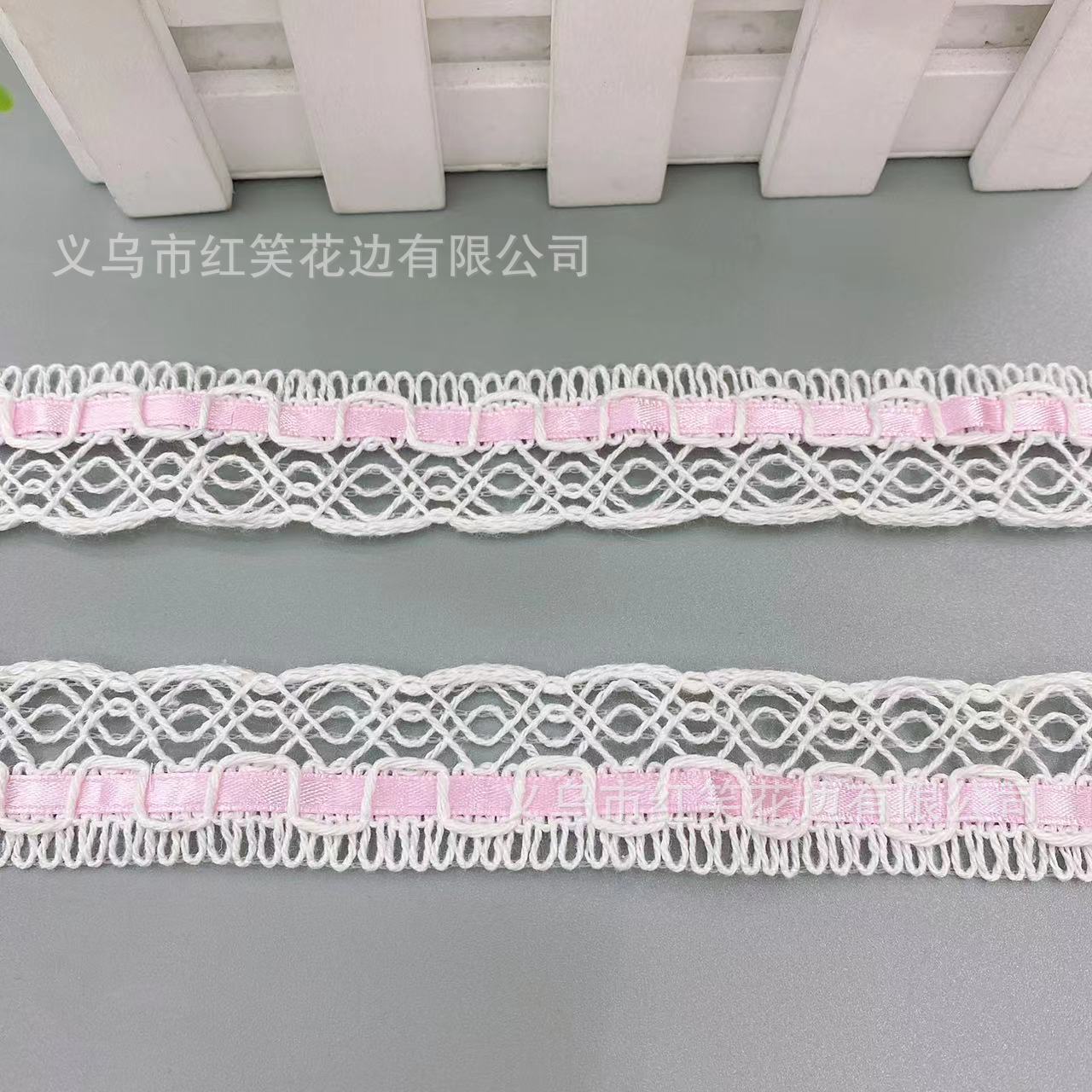 厂家现货批发穿丝带织带花边宽约2.5cm粉色蕾丝花边服装辅料花边 English | 投诉