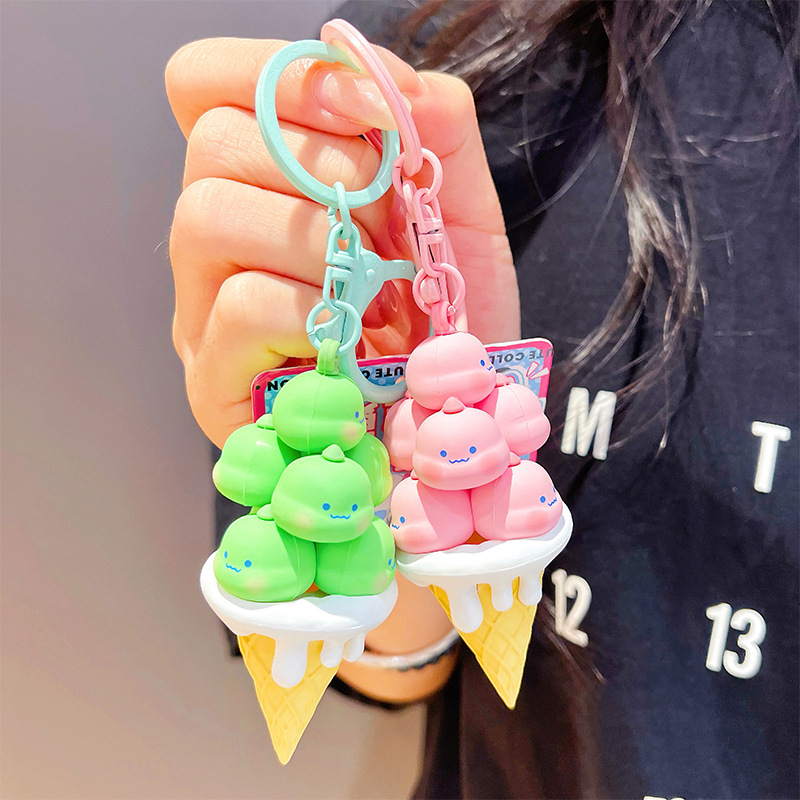 原创可爱甜筒冰淇淋钥匙扣挂件 卡通叠叠乐包包汽车用品小礼品