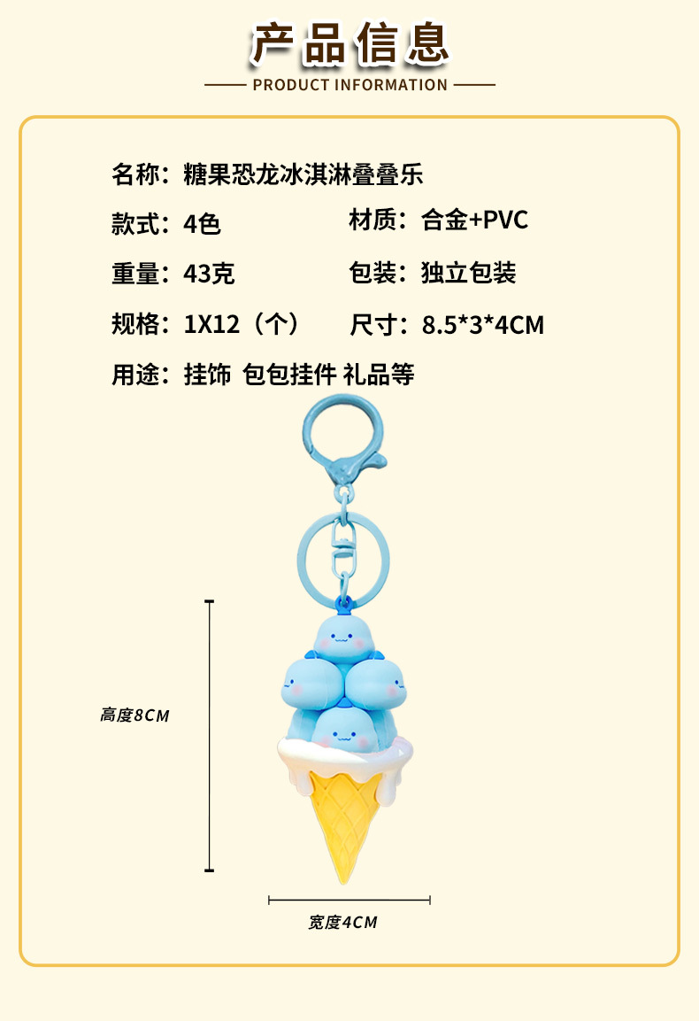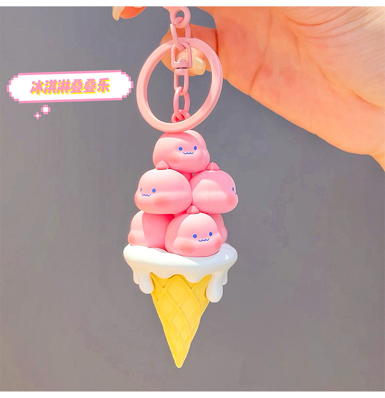 原创可爱甜筒冰淇淋钥匙扣挂件 卡通叠叠乐包包汽车用品小礼品 English | 投诉