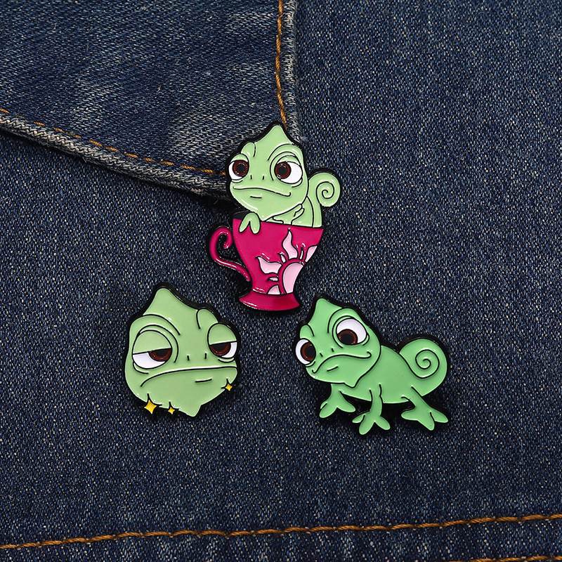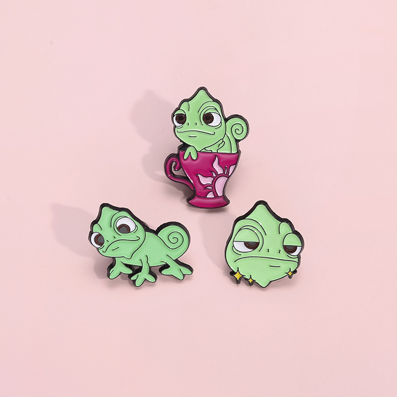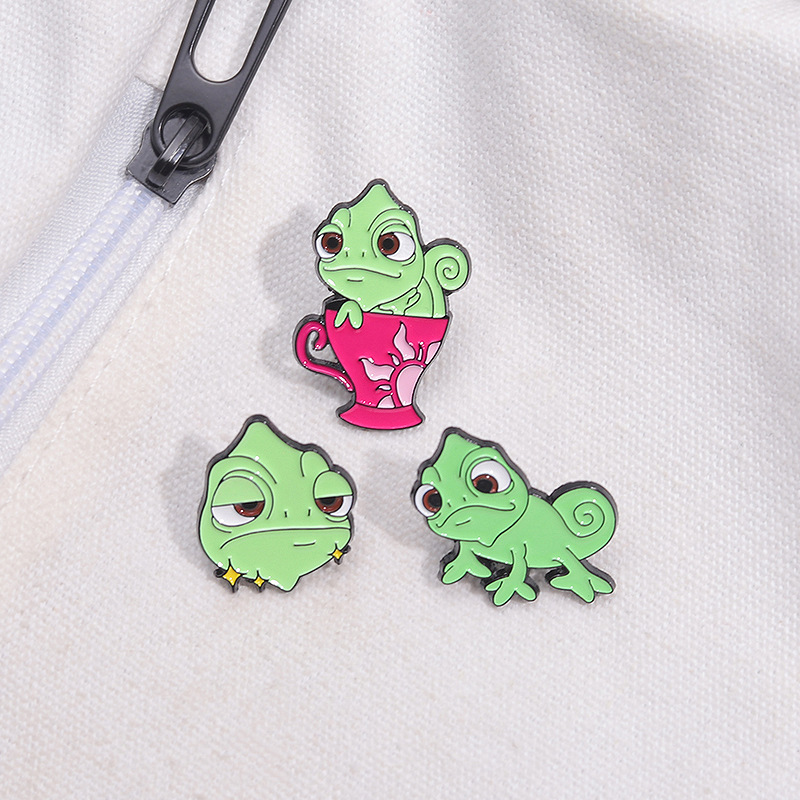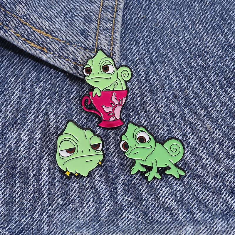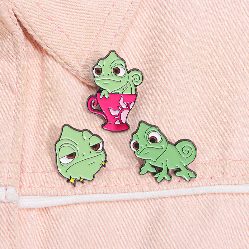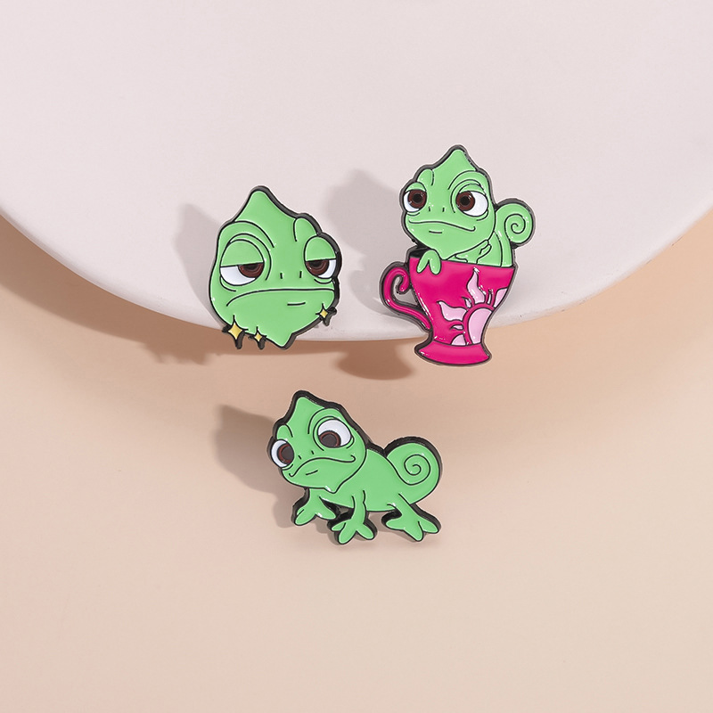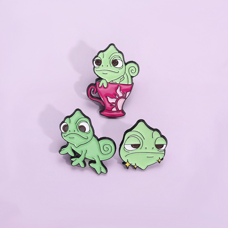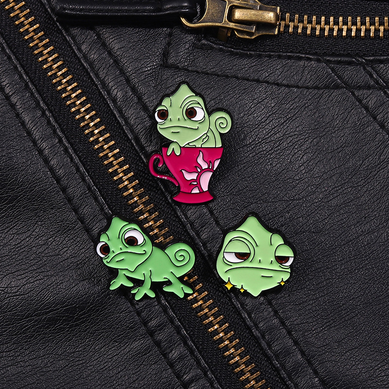 卡通创意可爱绿色变色龙胸针个性昆虫系列周边金属配饰烤漆徽章 投诉