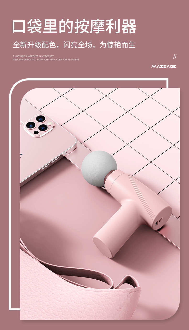 新款迷你便携式按摩枪USB充电健身筋膜枪肌肉小型按摩器礼品批发