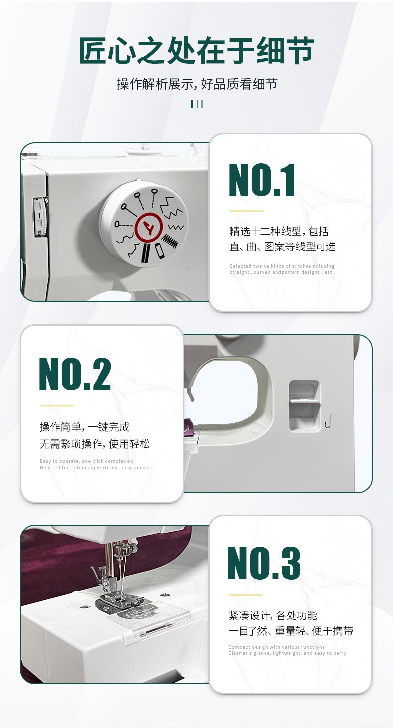 | 缝纫机标配款6台/箱+英文说明(电源欧规/美规/英规/澳规) | ¥0 | 296996台可售 |