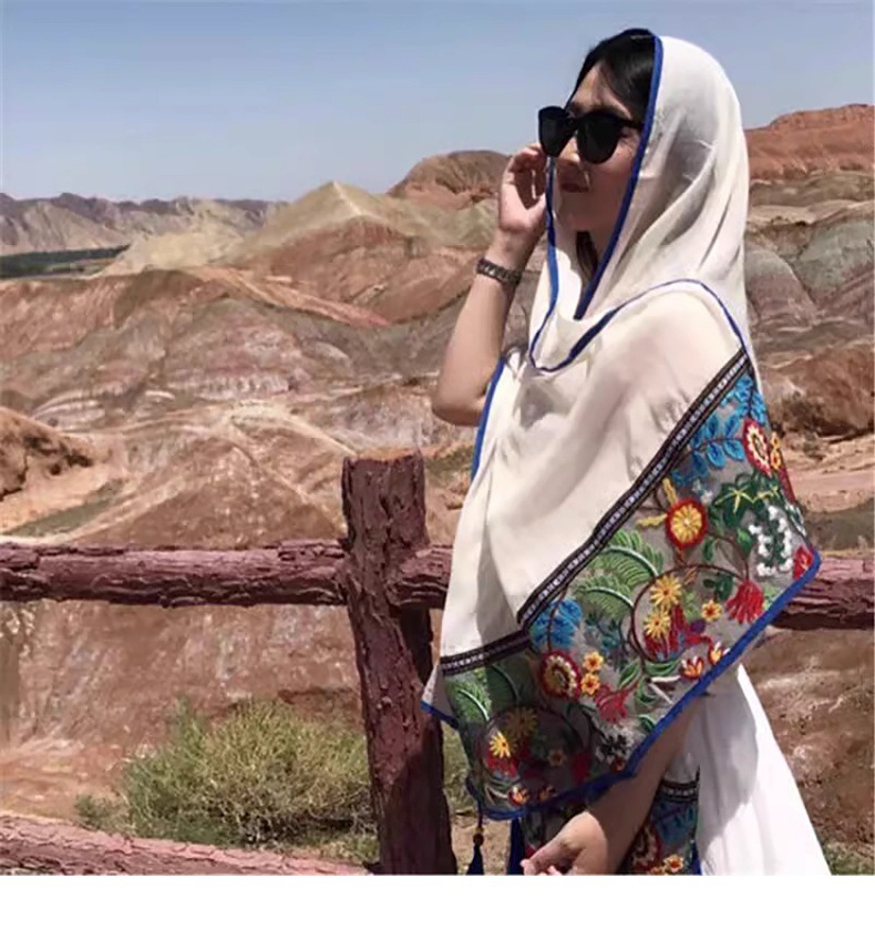 薄款夏季民族风旅游拍照围巾海南三亚大西北沙漠披肩青海穿搭丝巾 English | 投诉
