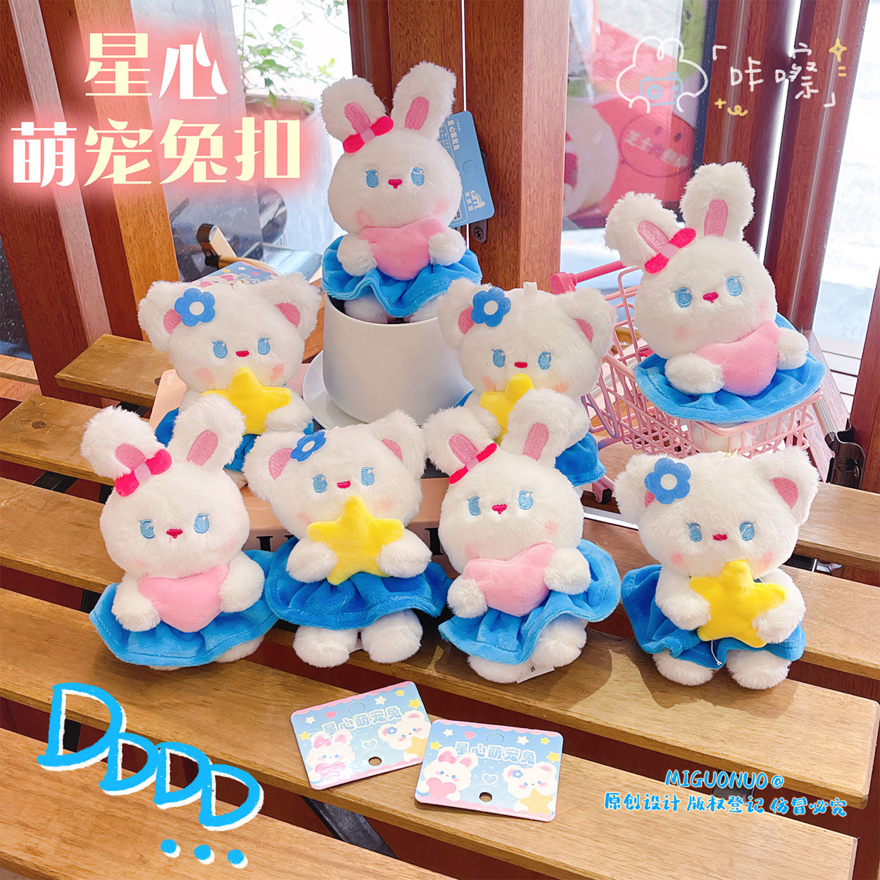 正版星心萌宠兔毛绒玩具娃娃机货源 爱心兔子公仔钥匙扣挂件批发 English | 投诉