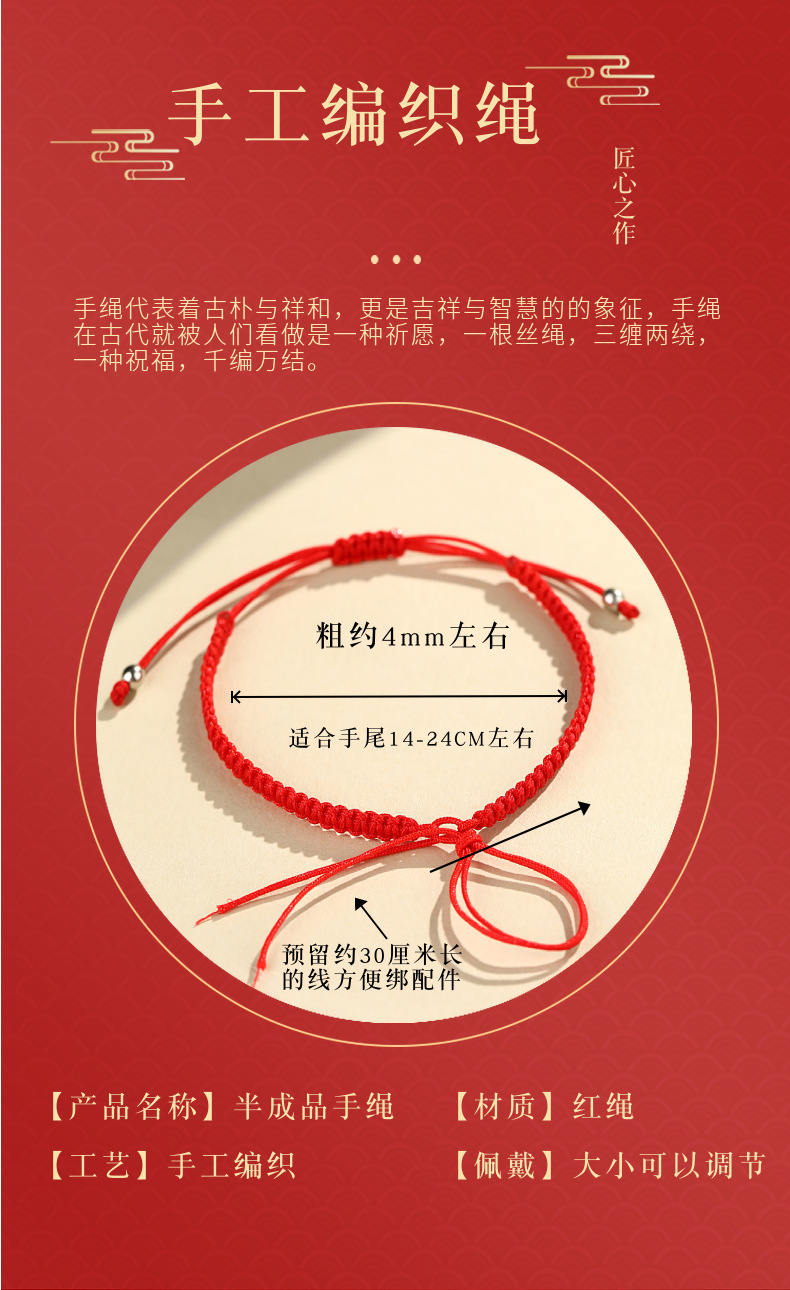 半成品手绳手工编织DIY半成品可串珠配件平安扣好运手绳男女手链 投诉
