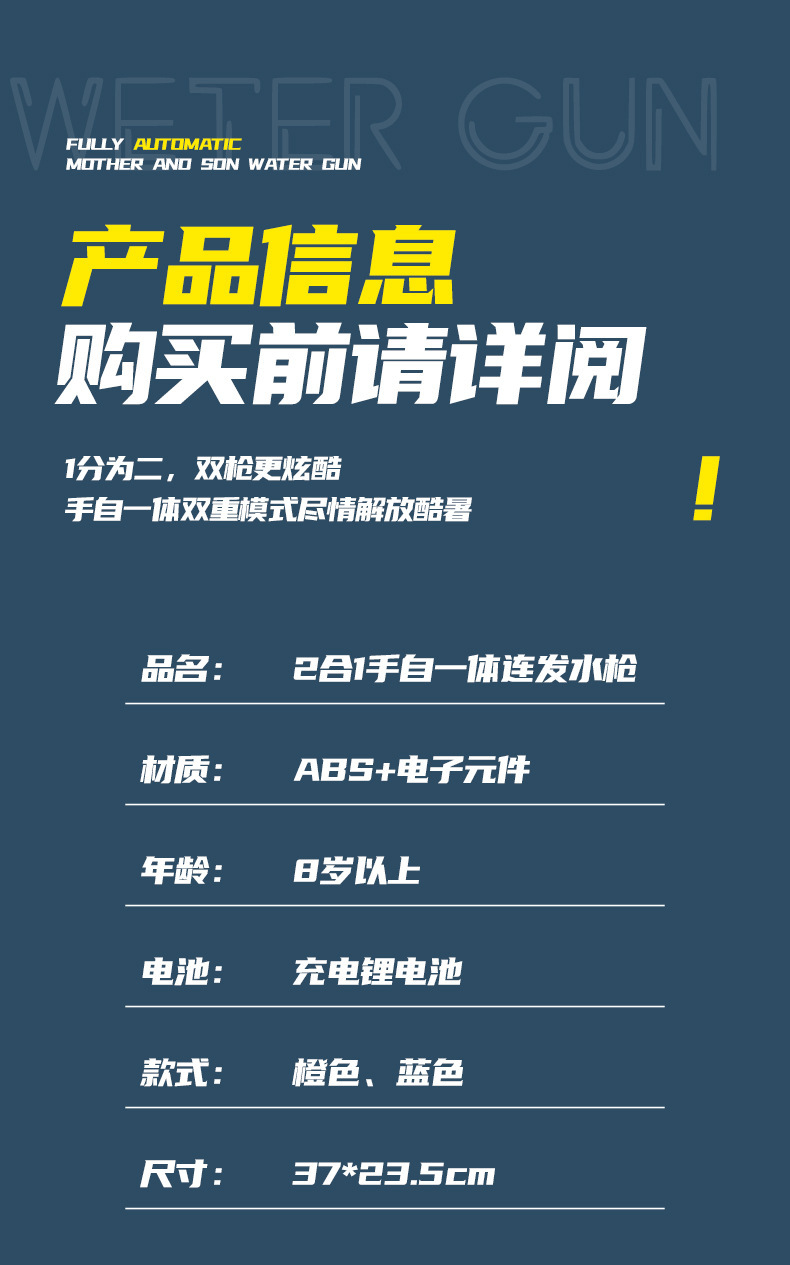 | 【电动+手动】 子母水枪1001黄蓝 | ¥2280 | 2000盒可售 |