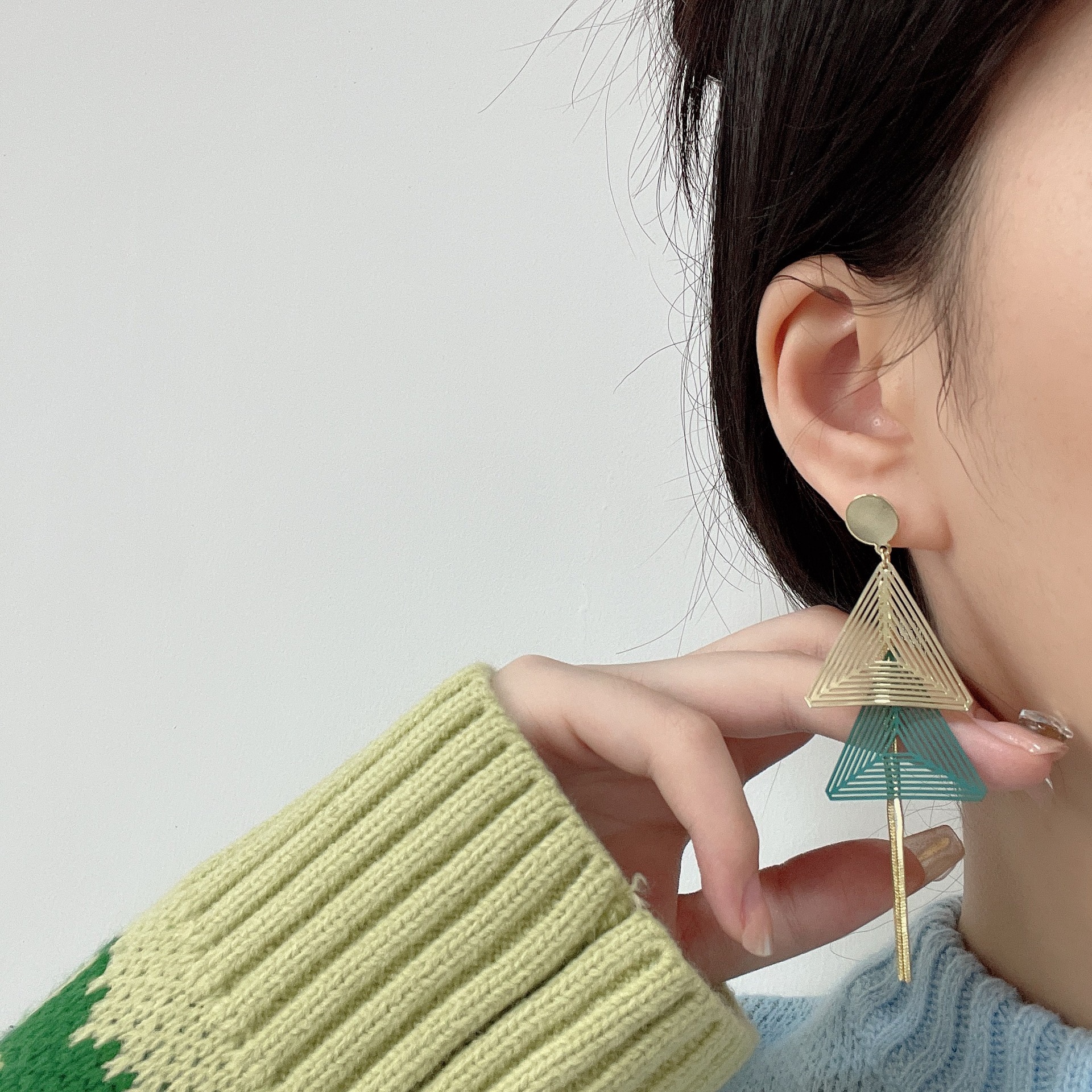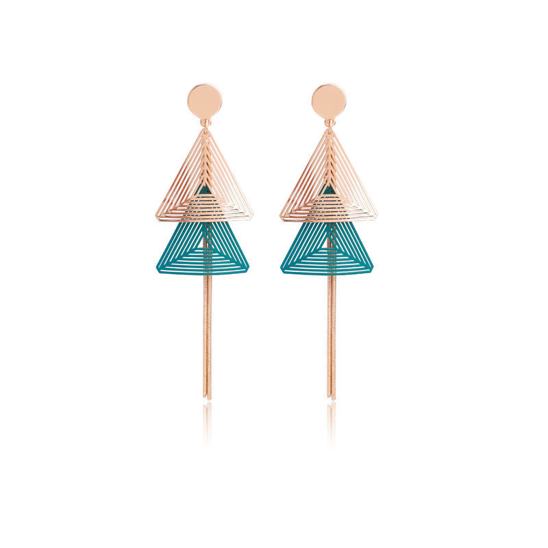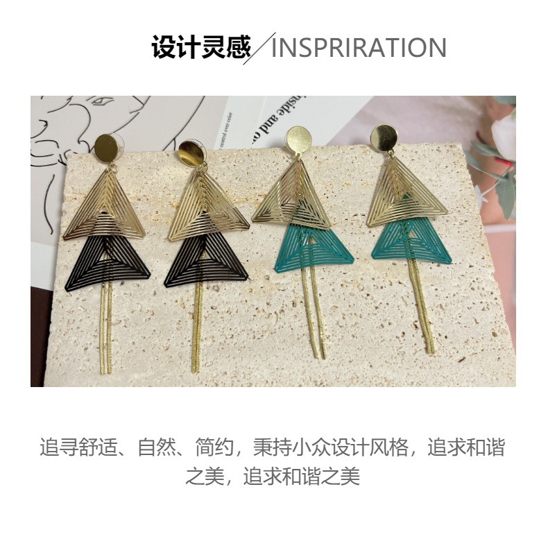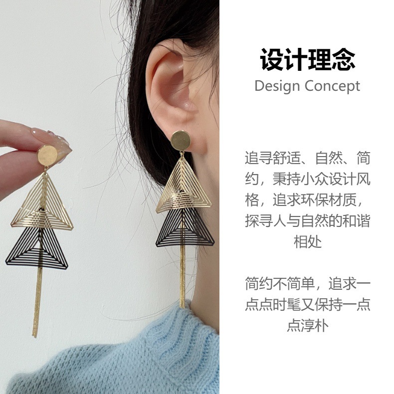 夸张几何耳坠长款流苏耳环S925新款三角吊坠耳环女超仙显脸瘦耳饰 English | 投诉