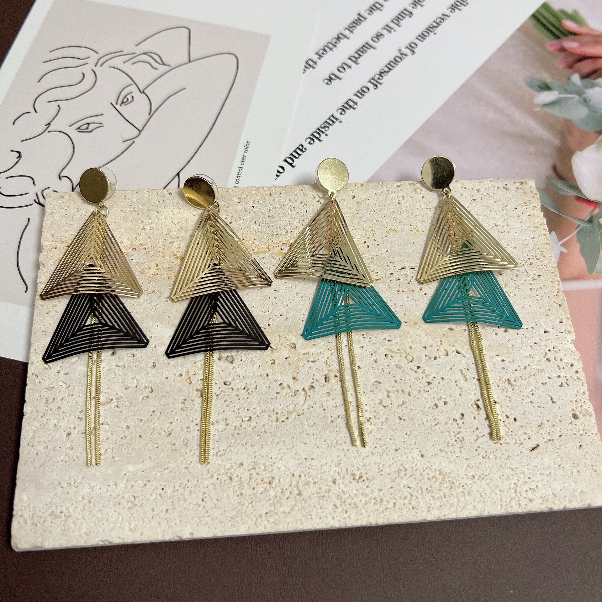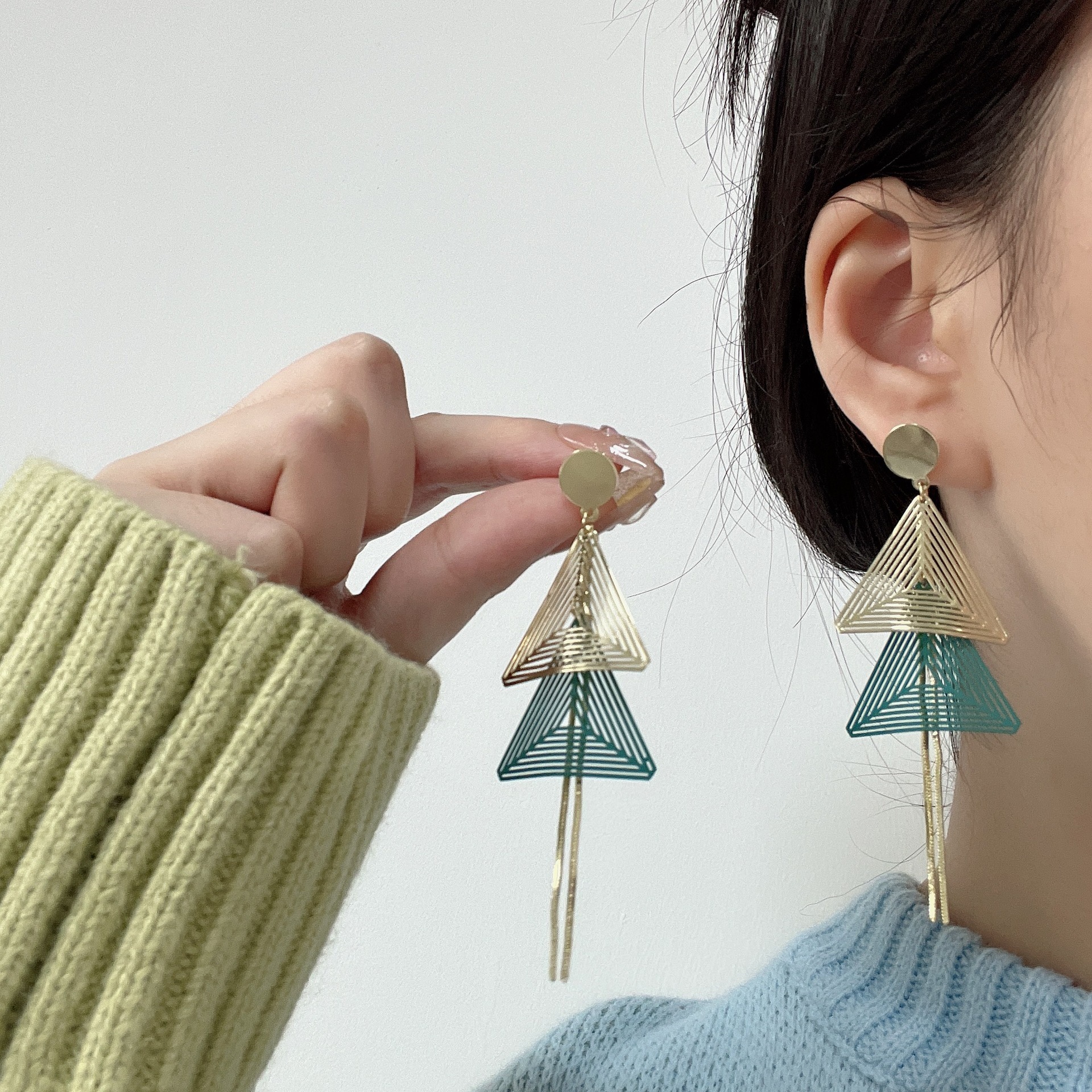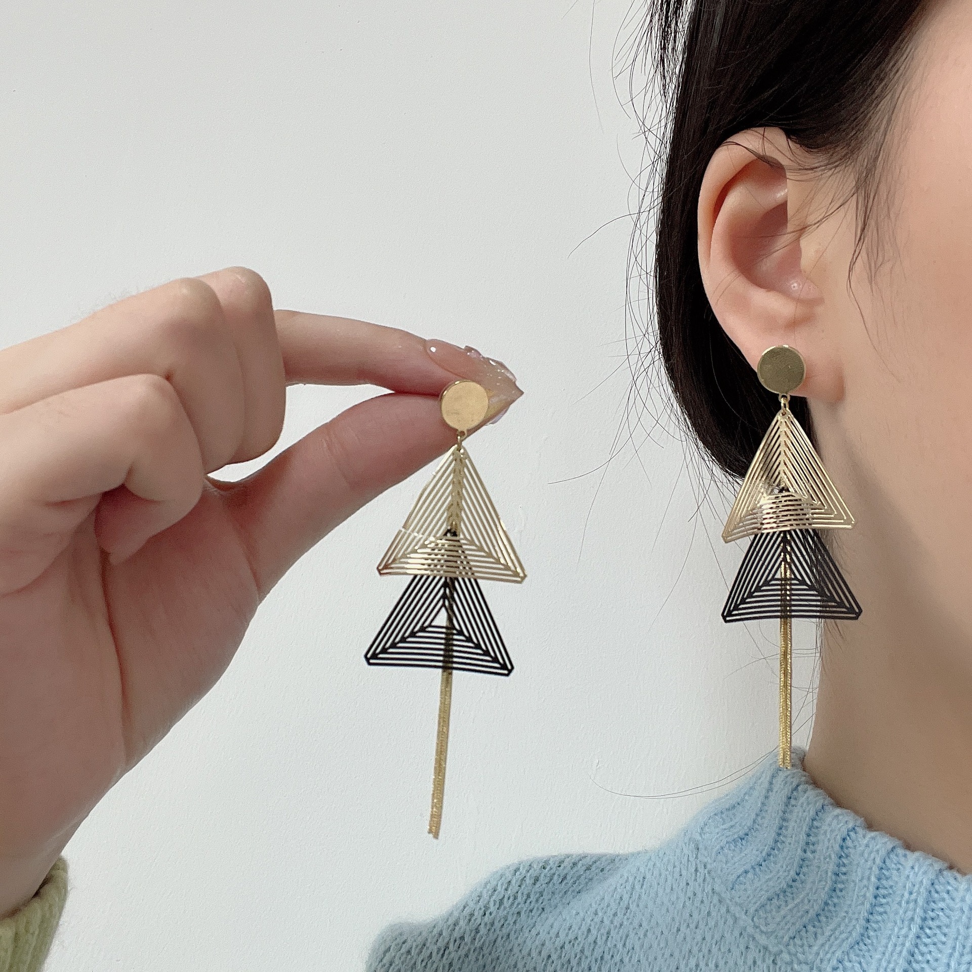夸张几何耳坠长款流苏耳环S925新款三角吊坠耳环女超仙显脸瘦耳饰 English | 投诉