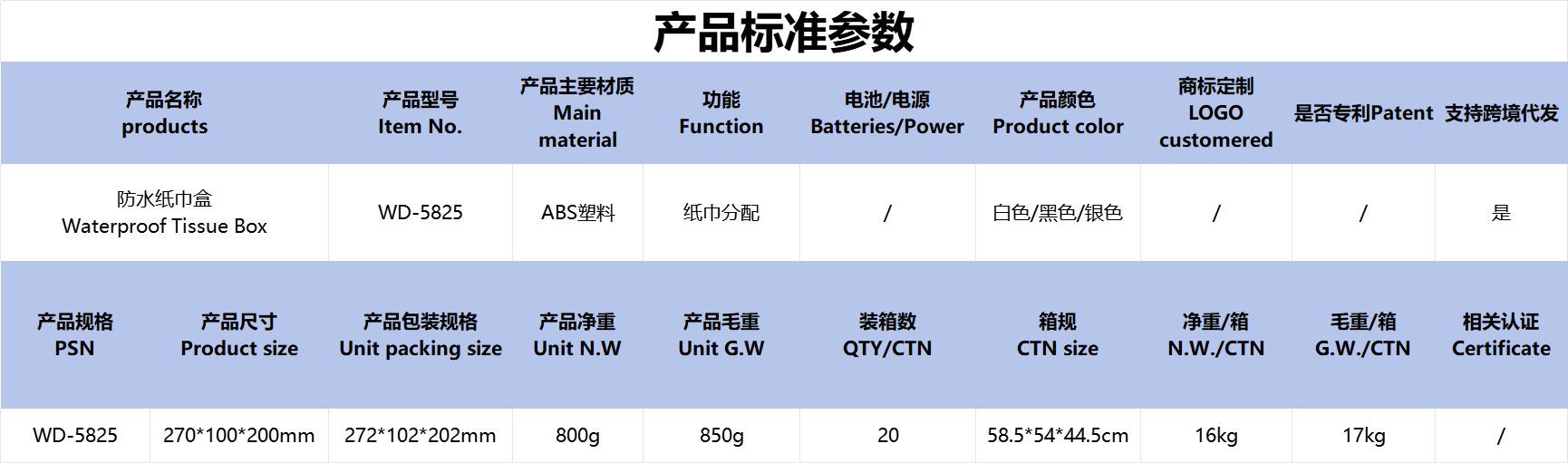 品牌: 意大斯ITAX 是否进口: 否 材质: 塑料 适用纸巾: 抽取式纸巾 适用场合: 客厅,卫浴间 型号: WD-5825/X-3334B 产地: 温州 箱装数量: 20 贸易属性: 内贸+外贸 加印LOGO: 可以 重量: 1.0 kg/个