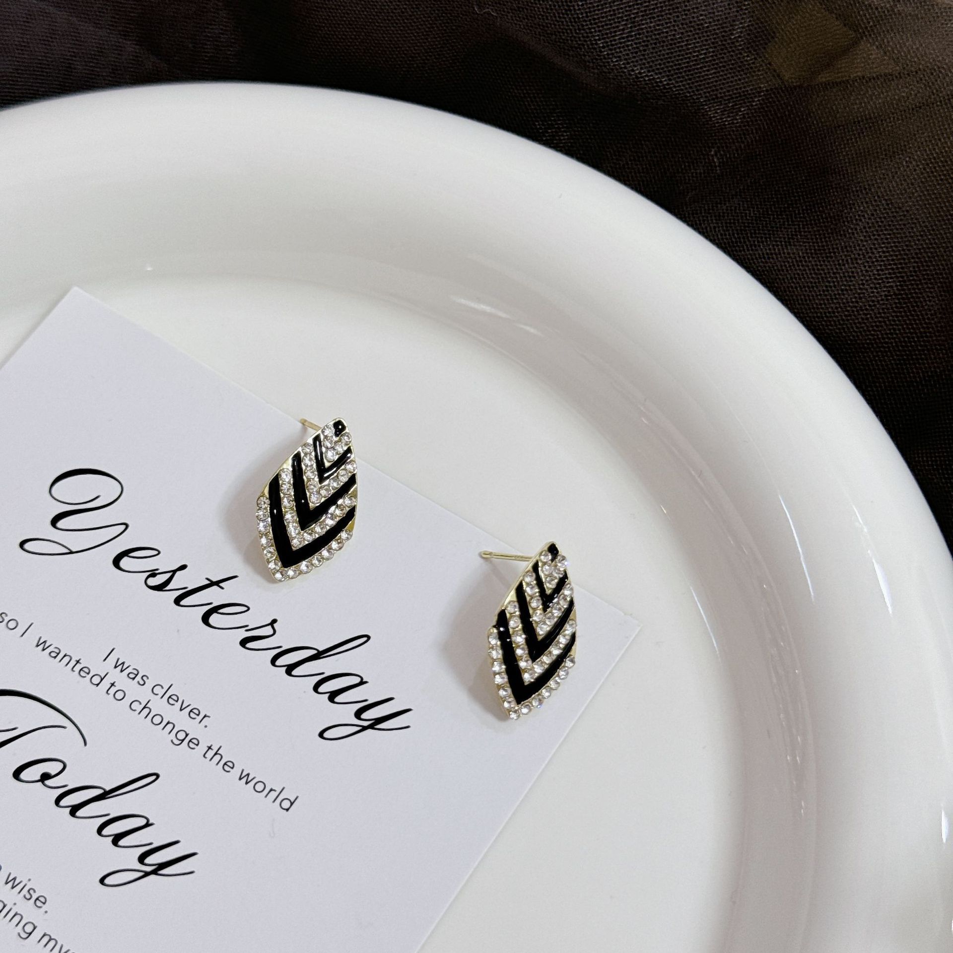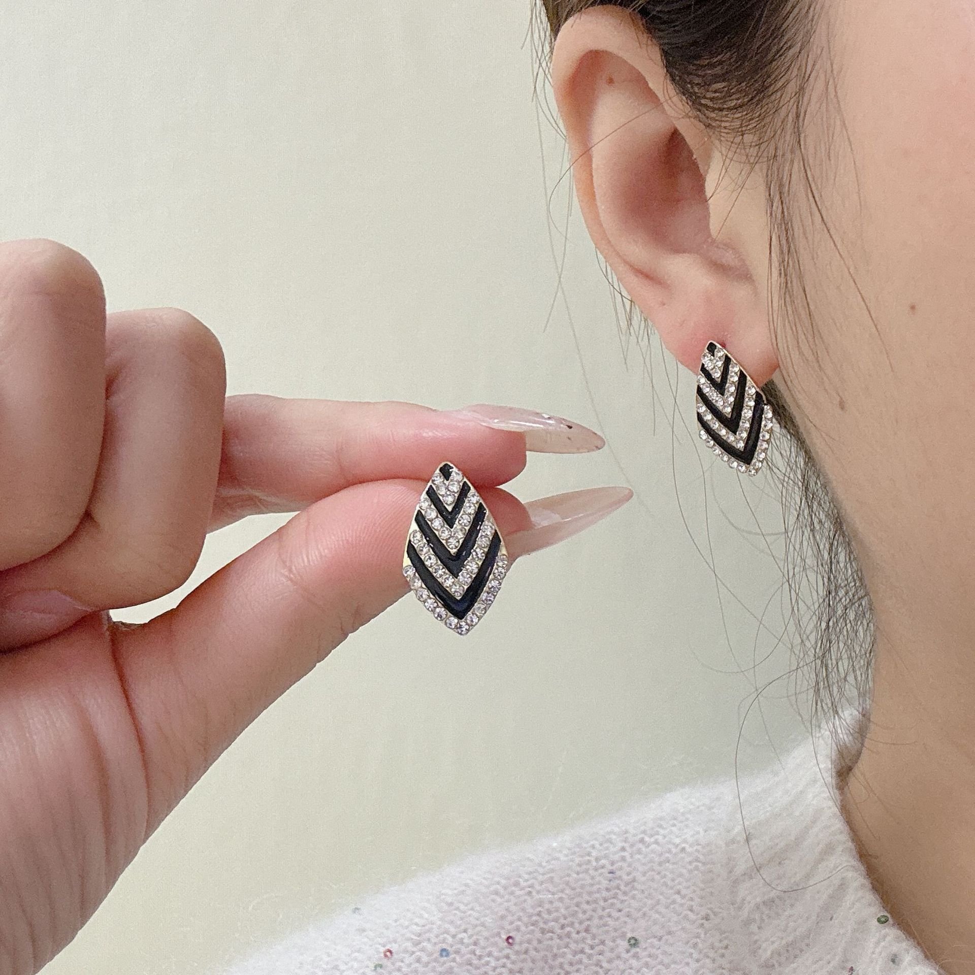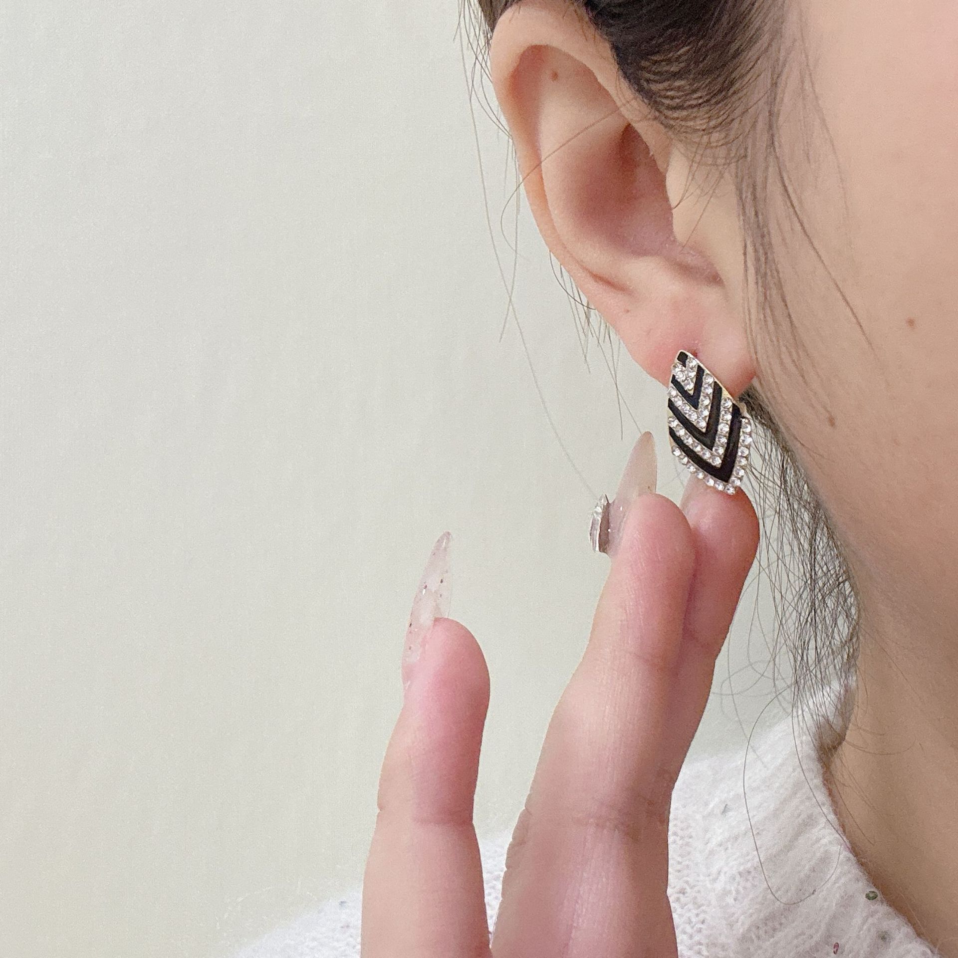 韩式精致耳环几何菱形满钻耳钉温柔优雅小众设计感网红百搭耳饰 English | 投诉