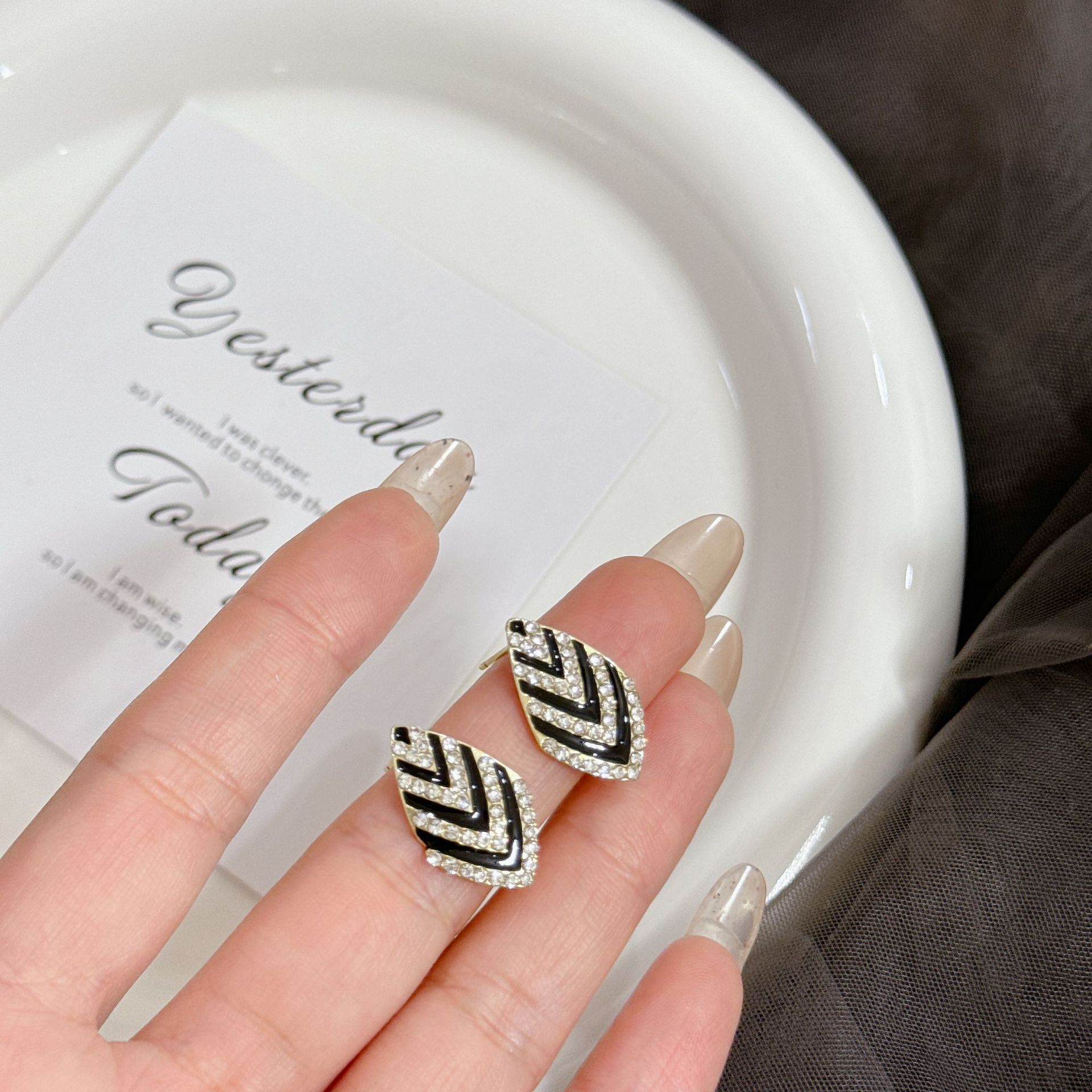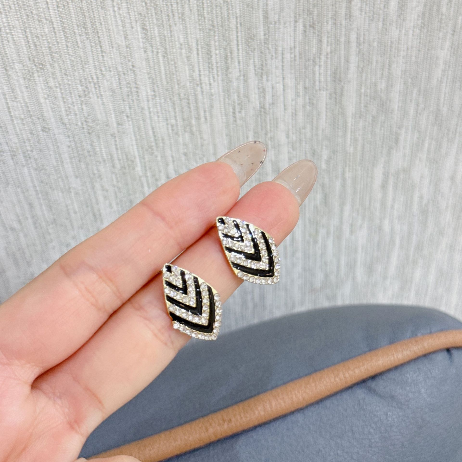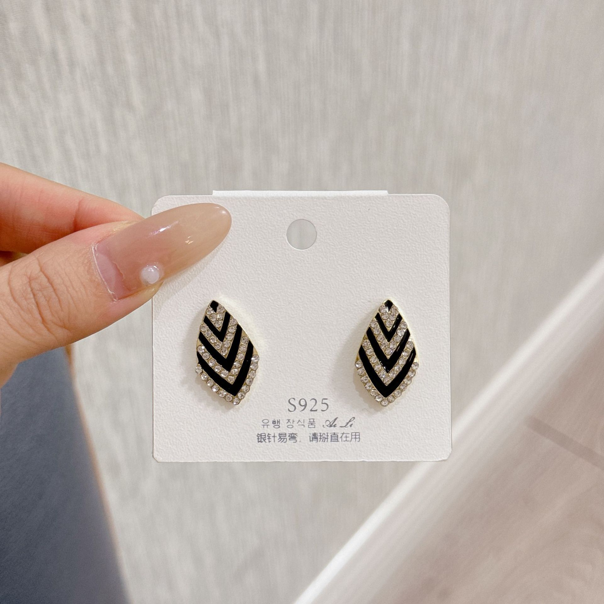 韩式精致耳环几何菱形满钻耳钉温柔优雅小众设计感网红百搭耳饰 English | 投诉