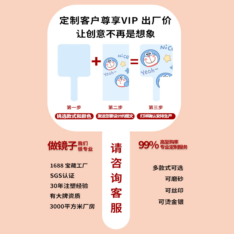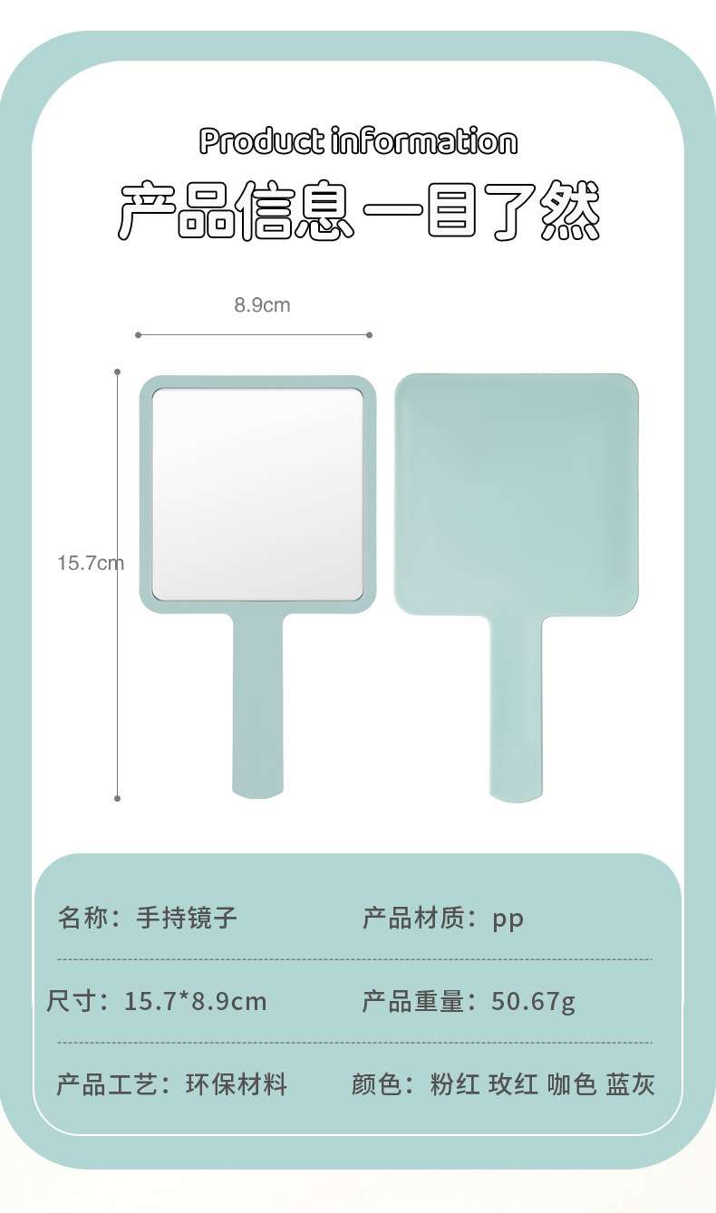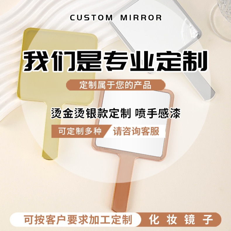 366方形桌面手持化妆镜子 DIY奶油胶小镜子随身携带女士家用梳妆 投诉