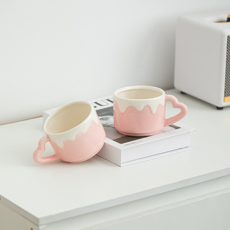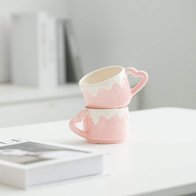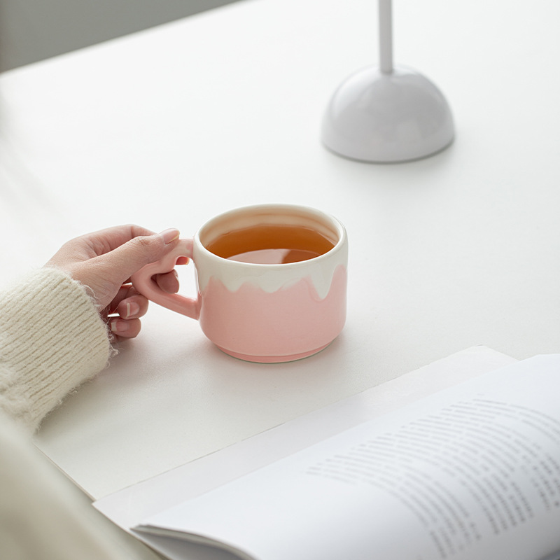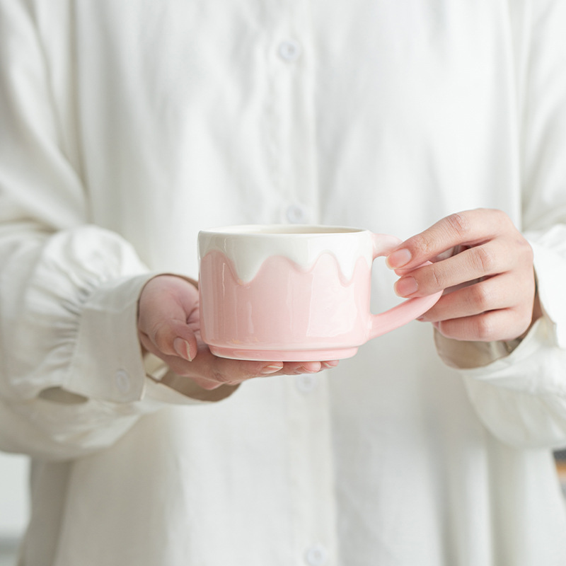 粉色奶油风陶瓷杯子可爱少女心茶杯带把家用办公喝水杯创意茶杯