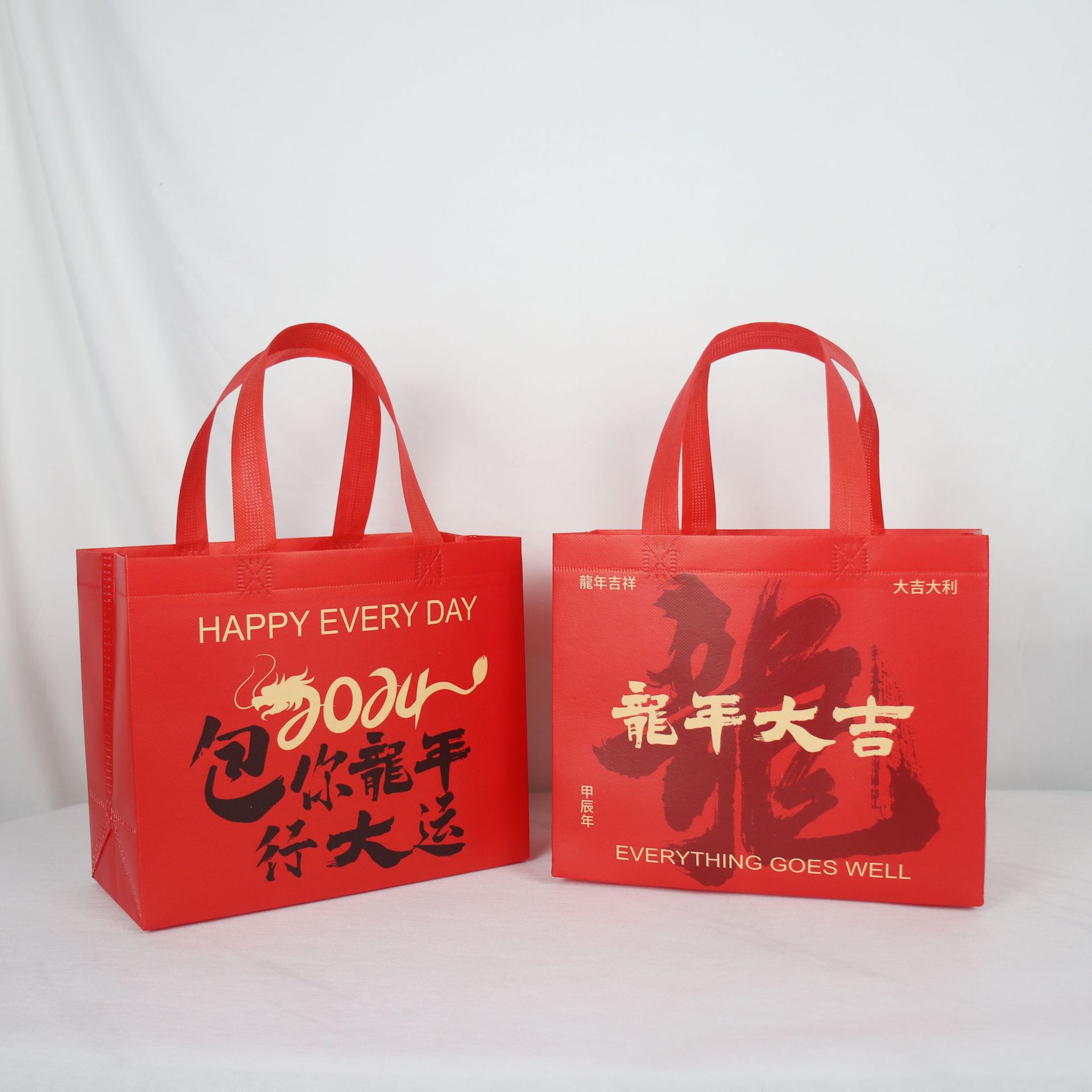 定制新年无纺布手提袋春节大红色环保袋元旦礼品袋年货送礼包装袋