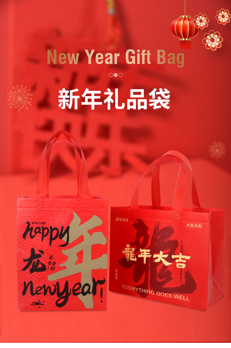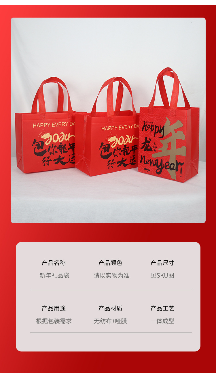 定制新年无纺布手提袋春节大红色环保袋元旦礼品袋年货送礼包装袋 投诉