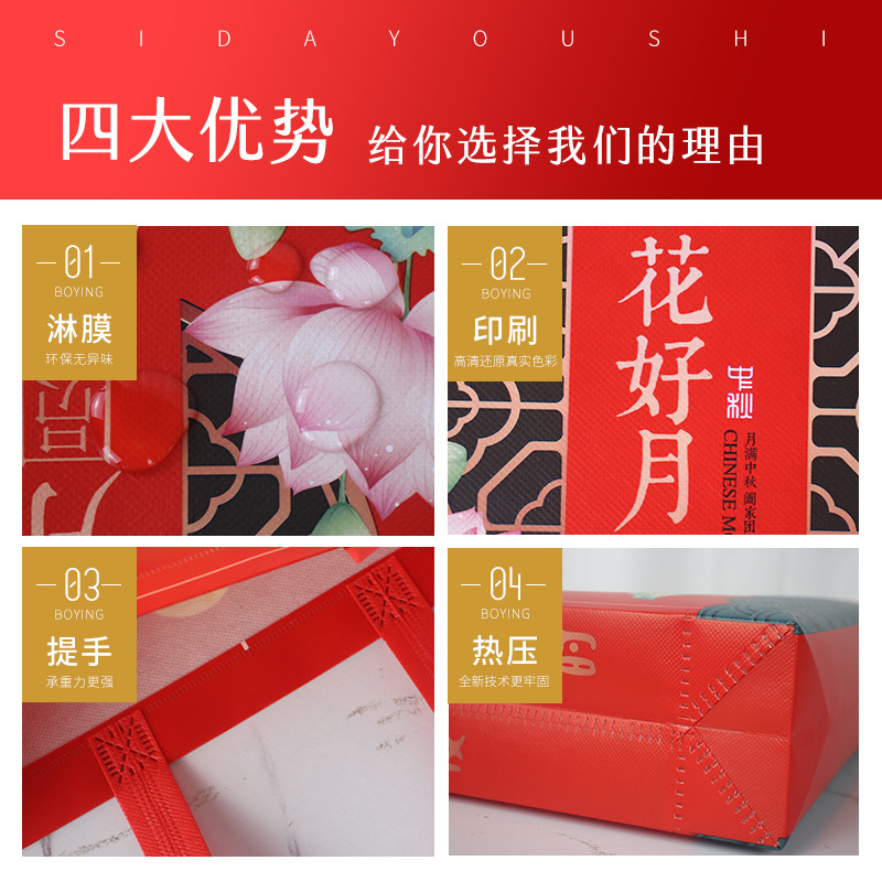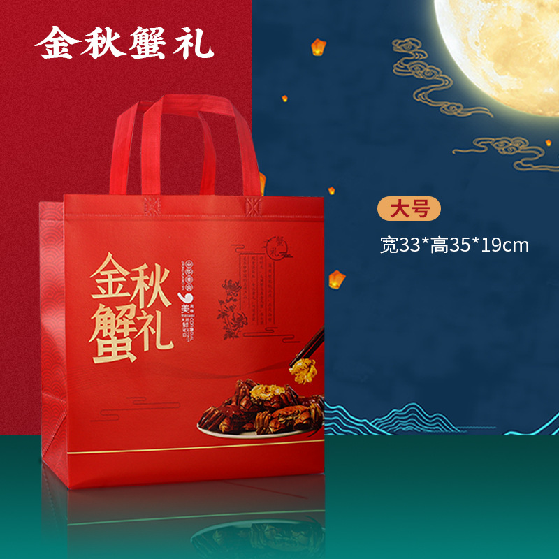 中秋无纺布手提袋彩色加厚覆膜大闸蟹包装袋中秋礼品袋月饼包装袋