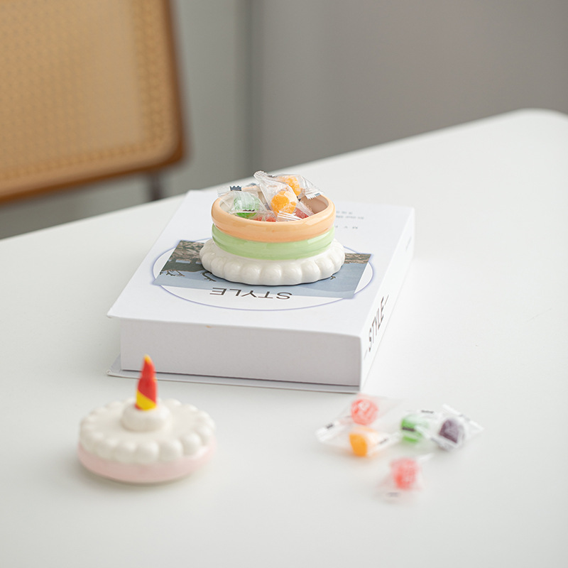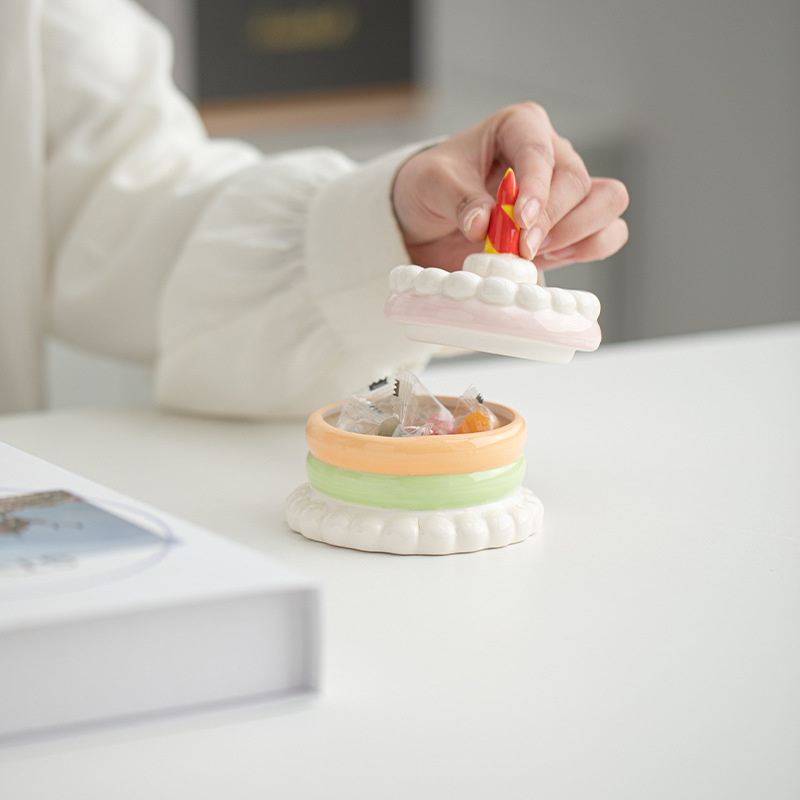 生日蛋糕陶瓷收纳罐奶油风少女心桌面收纳首饰盒创意烟灰缸生日礼