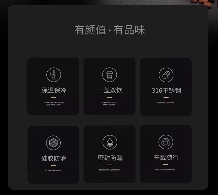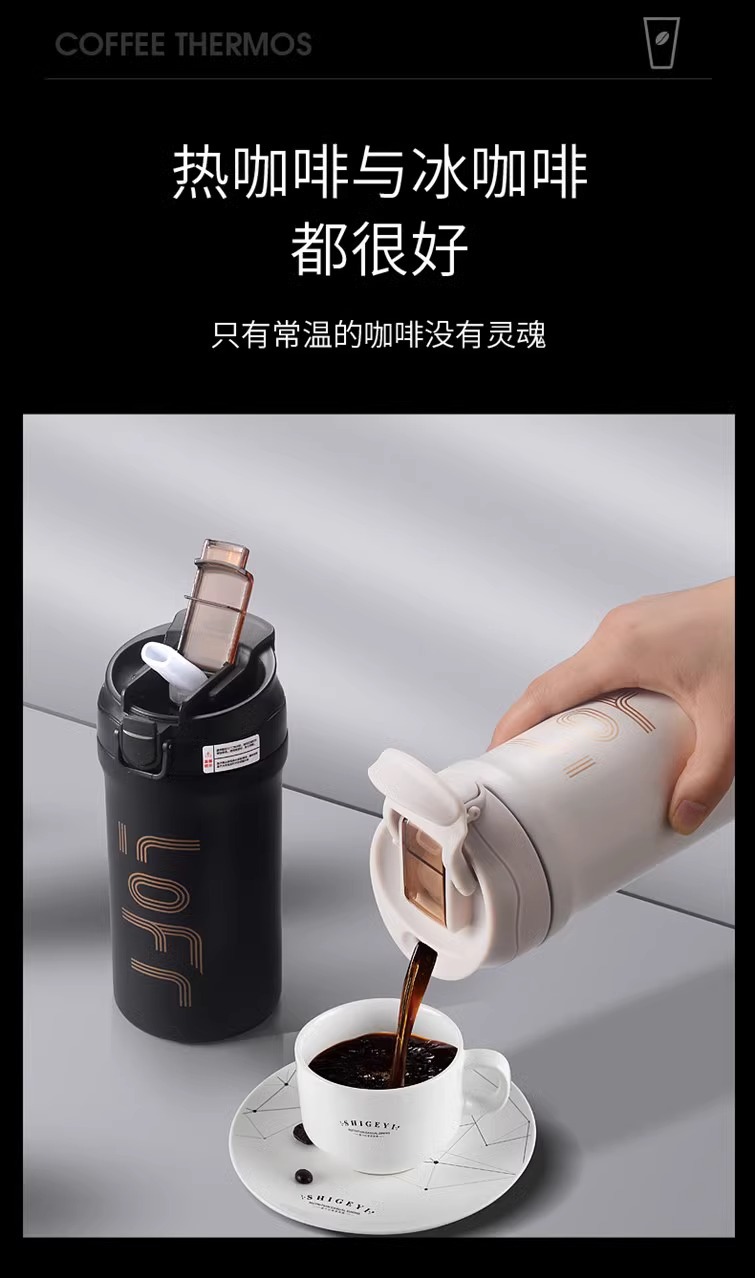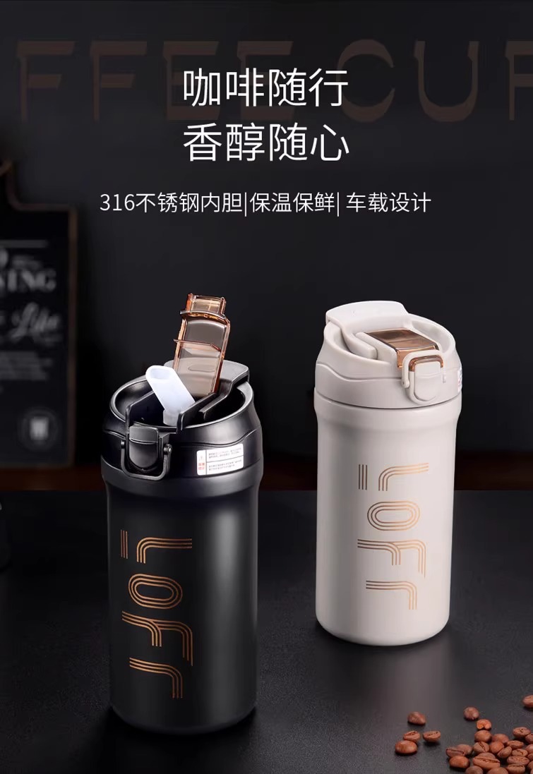 新款高颜值美式双饮咖啡杯316不锈钢保温杯运动健身便携吸管水杯