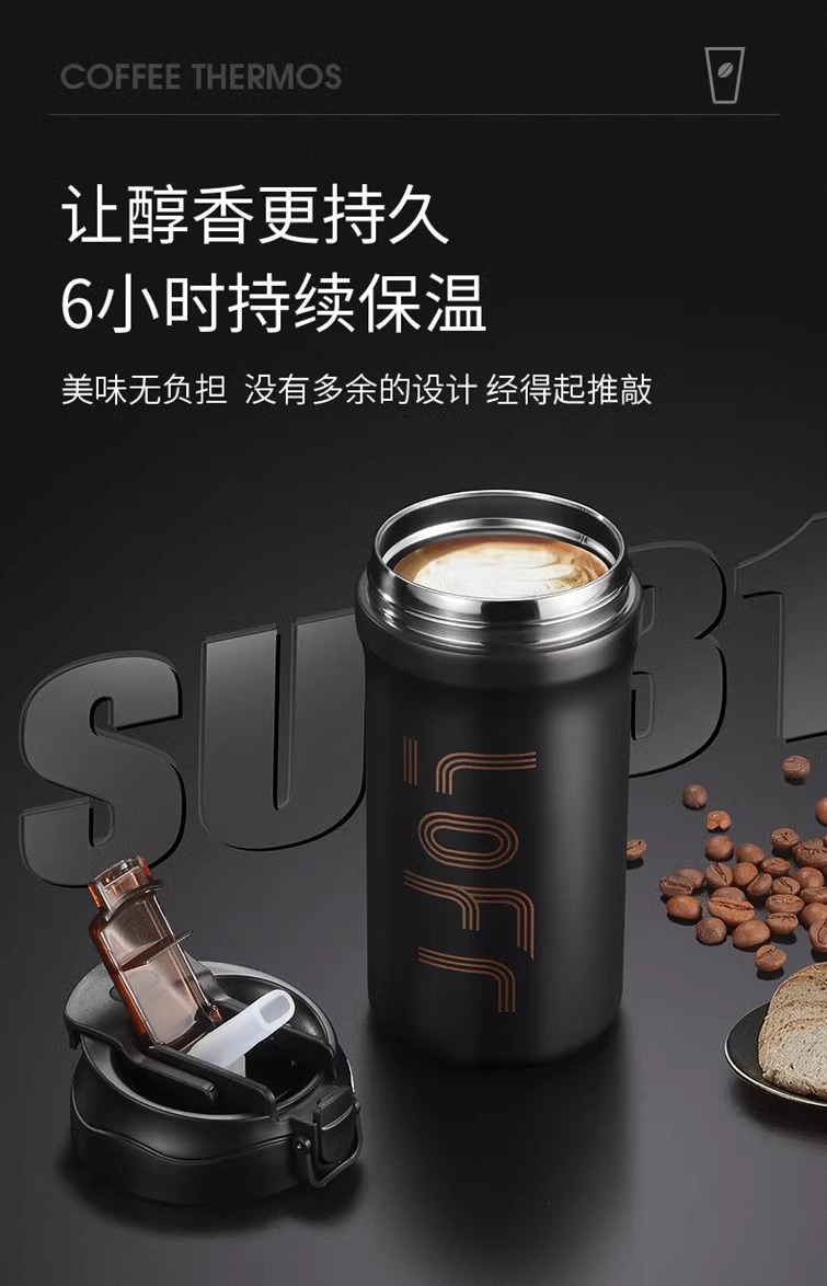 新款高颜值美式双饮咖啡杯316不锈钢保温杯运动健身便携吸管水杯 投诉