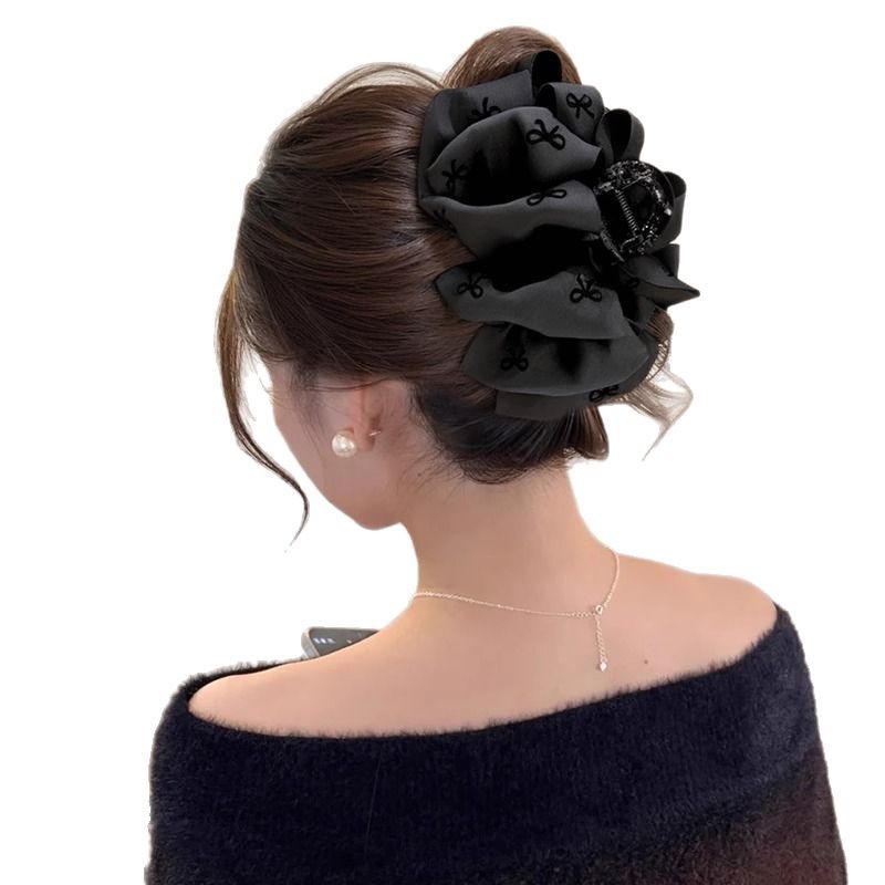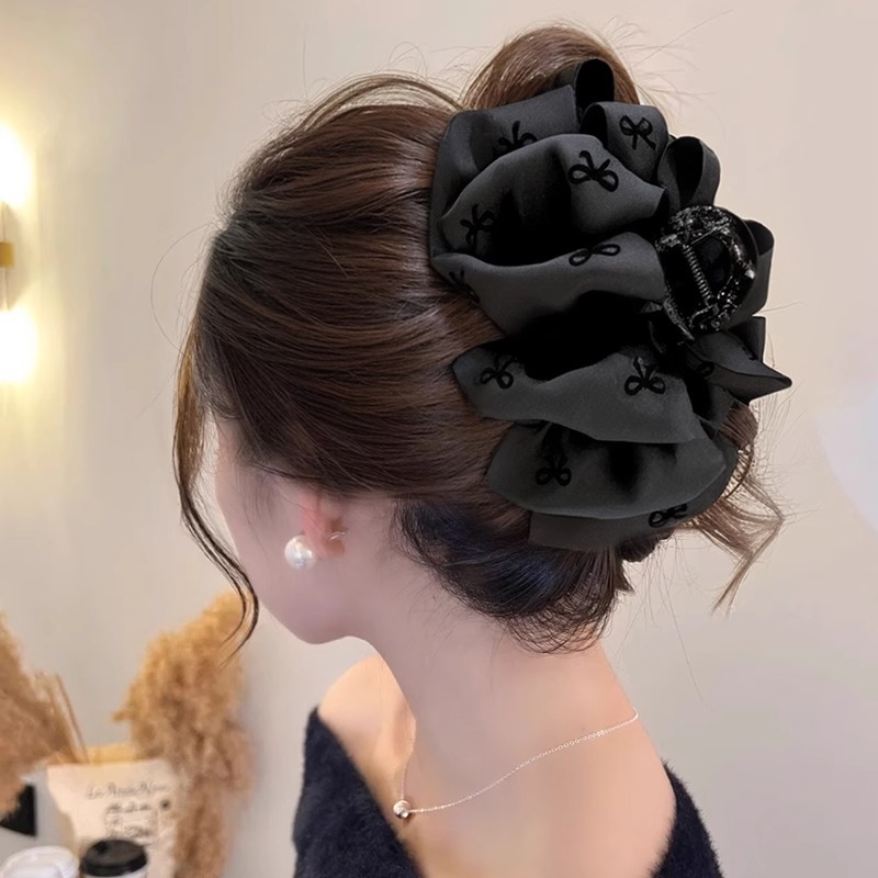 气质感黑色蝴蝶结抓夹女泡泡云朵发夹后脑勺大号鲨鱼夹