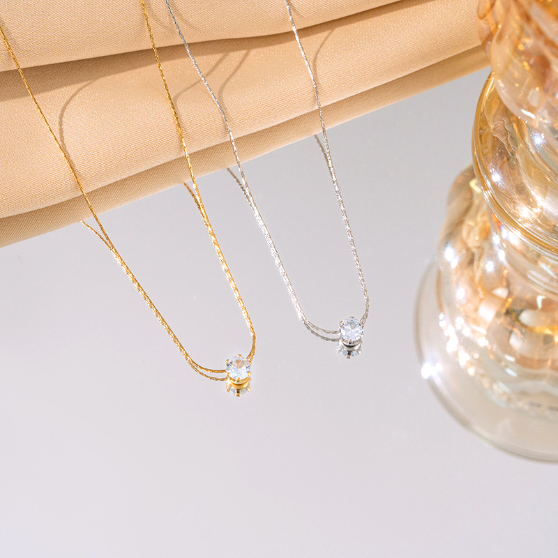 不掉色简约六爪钛钢项链女时尚百搭小锆石吊坠小众轻奢锁骨链批发 投诉