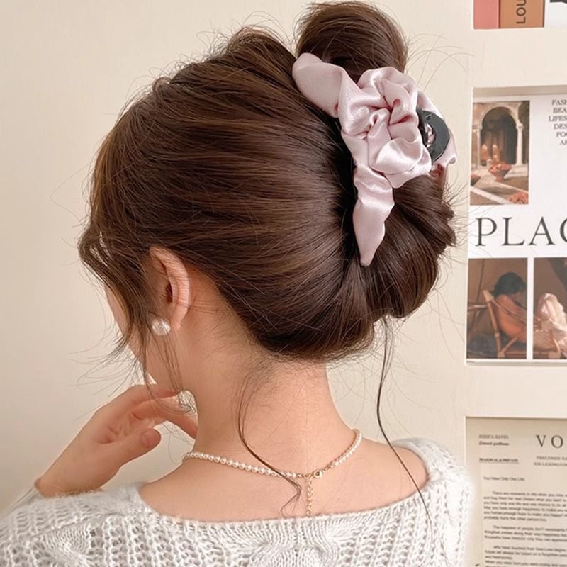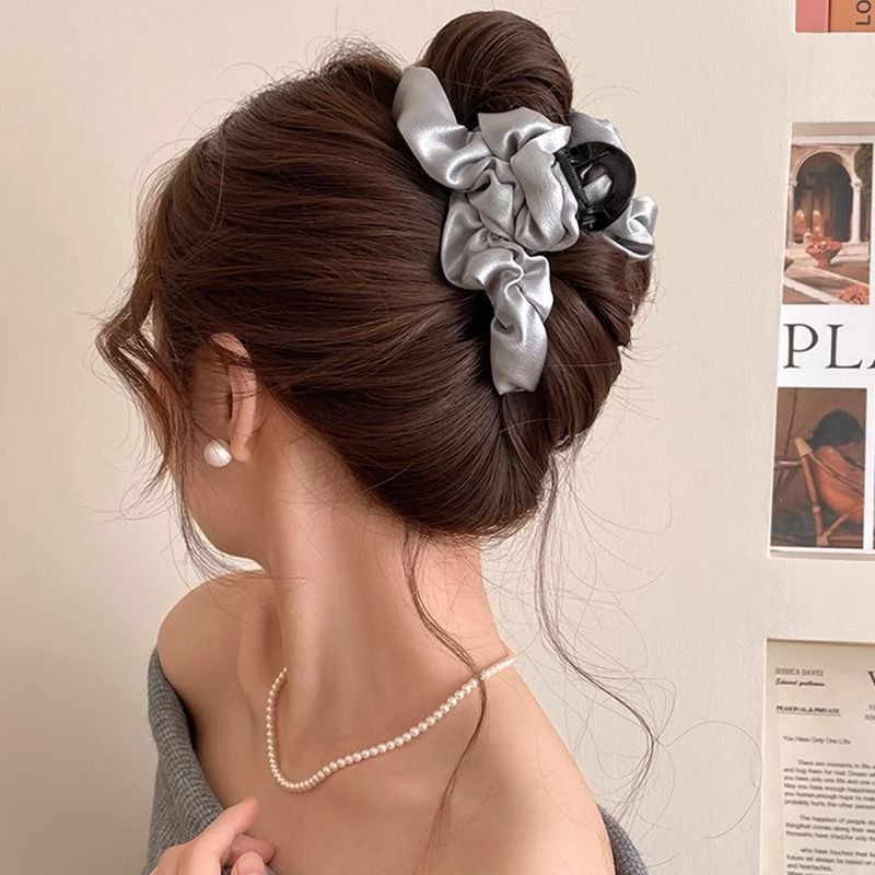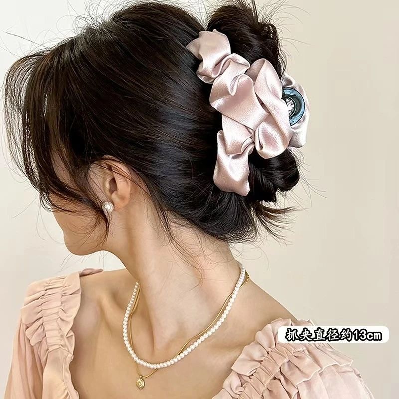 高级感布艺褶皱缎面泡泡抓夹女轻奢百搭头饰后脑勺盘发鲨鱼夹发卡 投诉