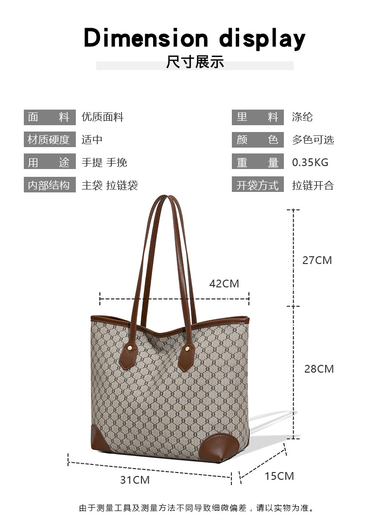 跨境托特女包高级感大包包新款轻奢女包流行轻奢大容量通勤单肩包 投诉