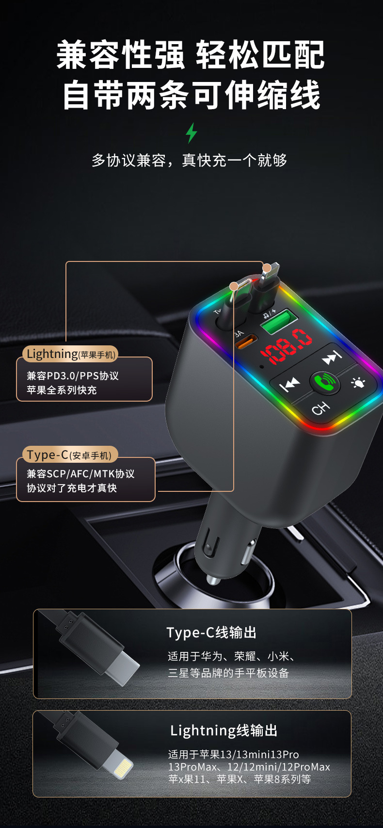 充电线最长可拉伸80CM