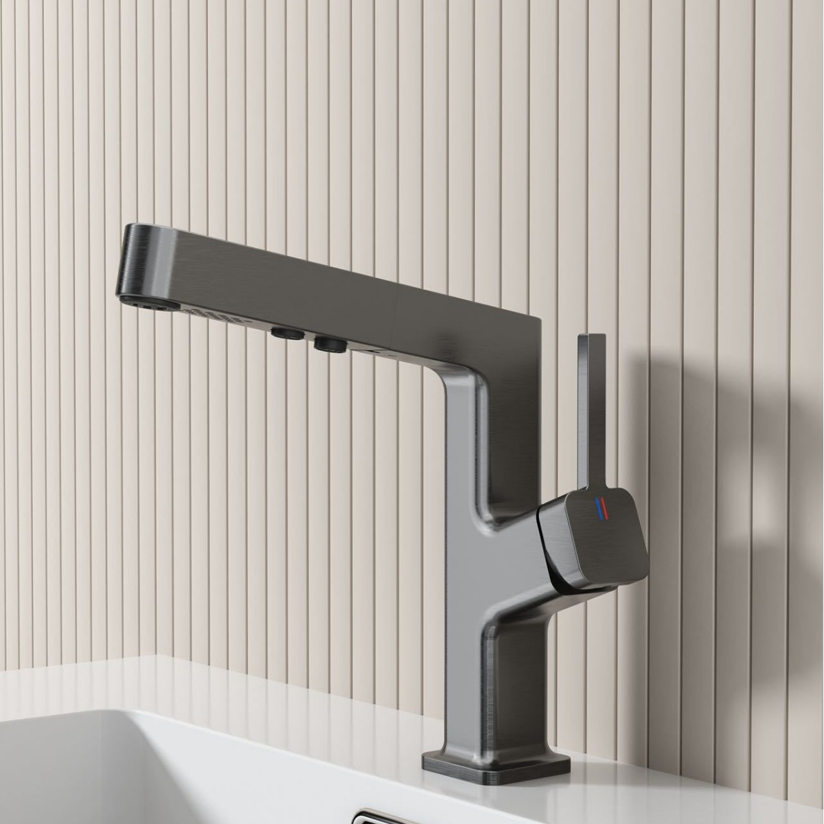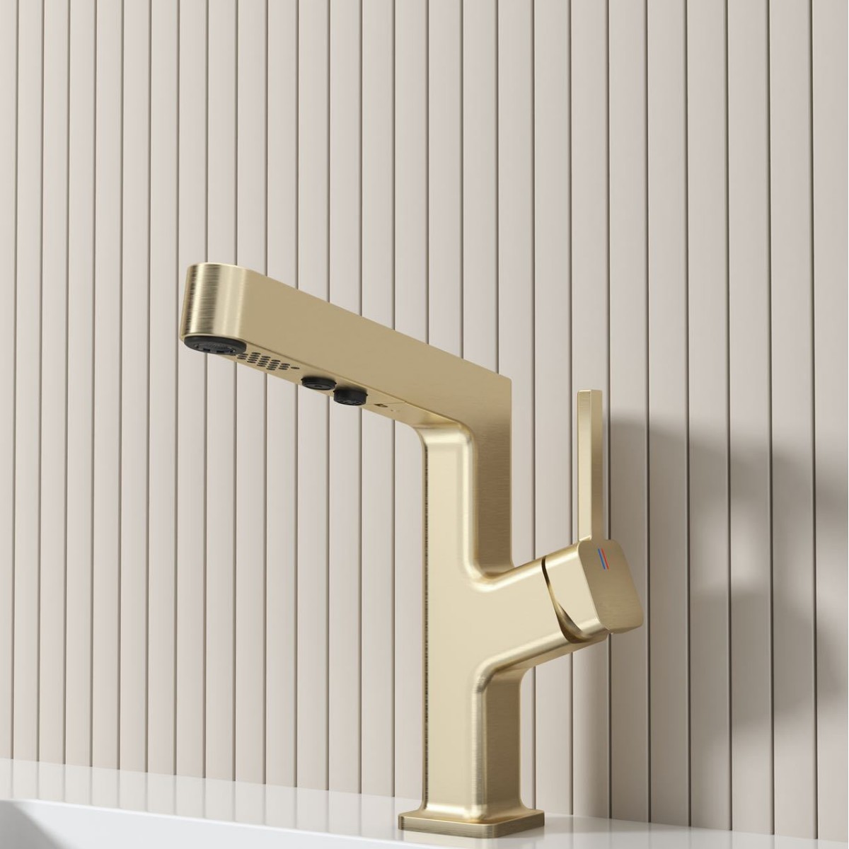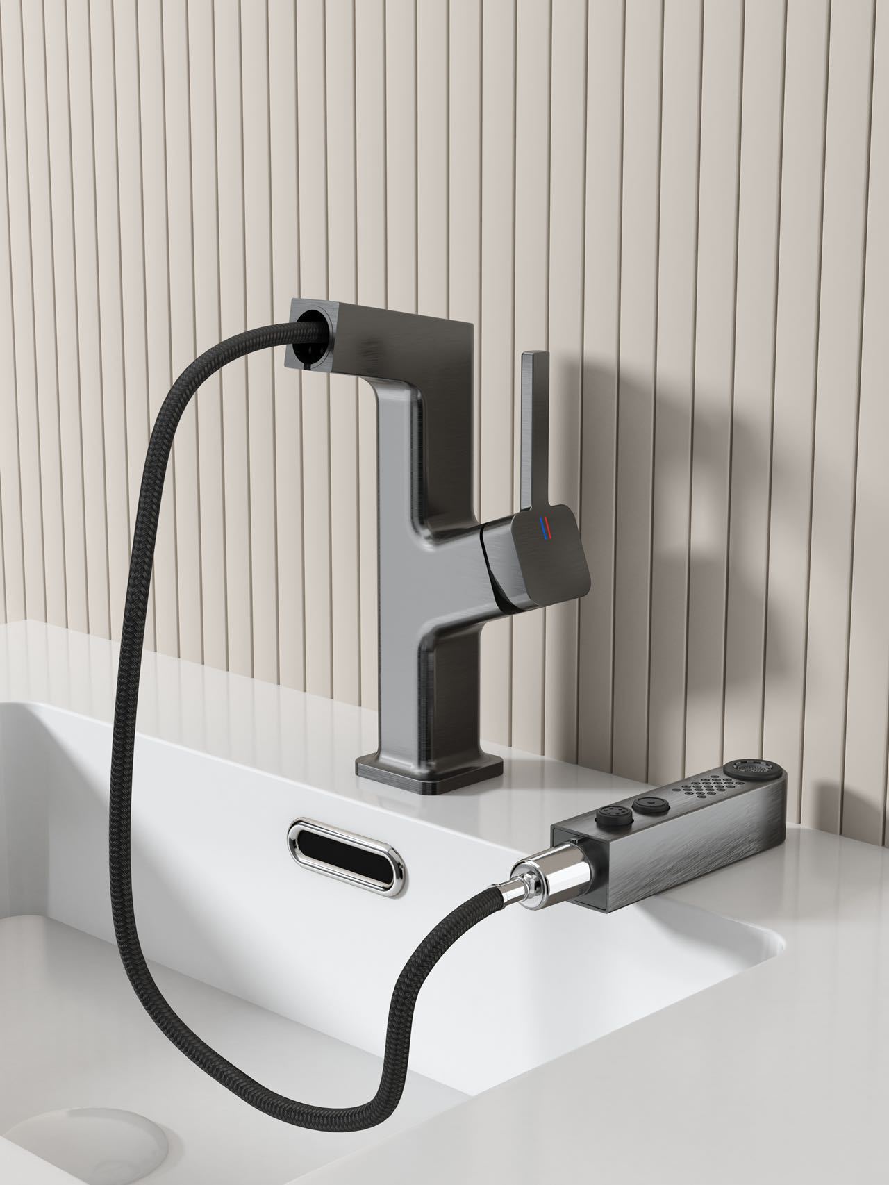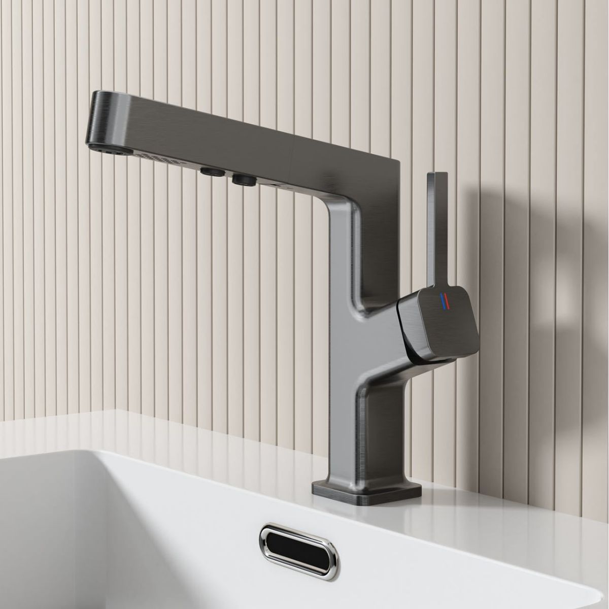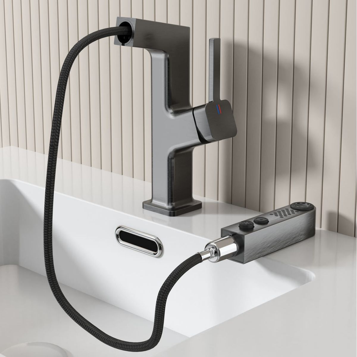 奶油风白色冷热抽拉浴室柜面盆龙头防溅气泡出水家用厨卫水龙头