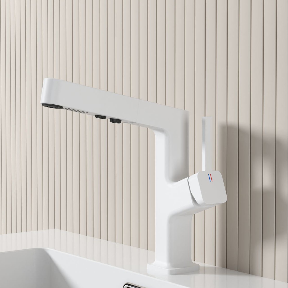 奶油风白色冷热抽拉浴室柜面盆龙头防溅气泡出水家用厨卫水龙头 English | 投诉